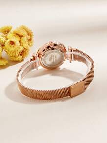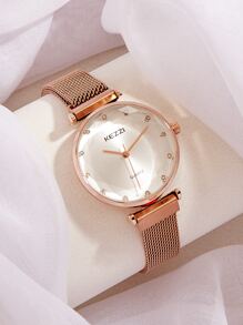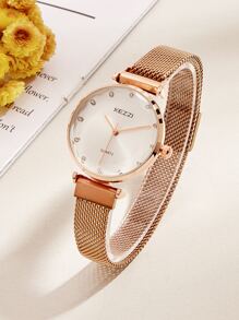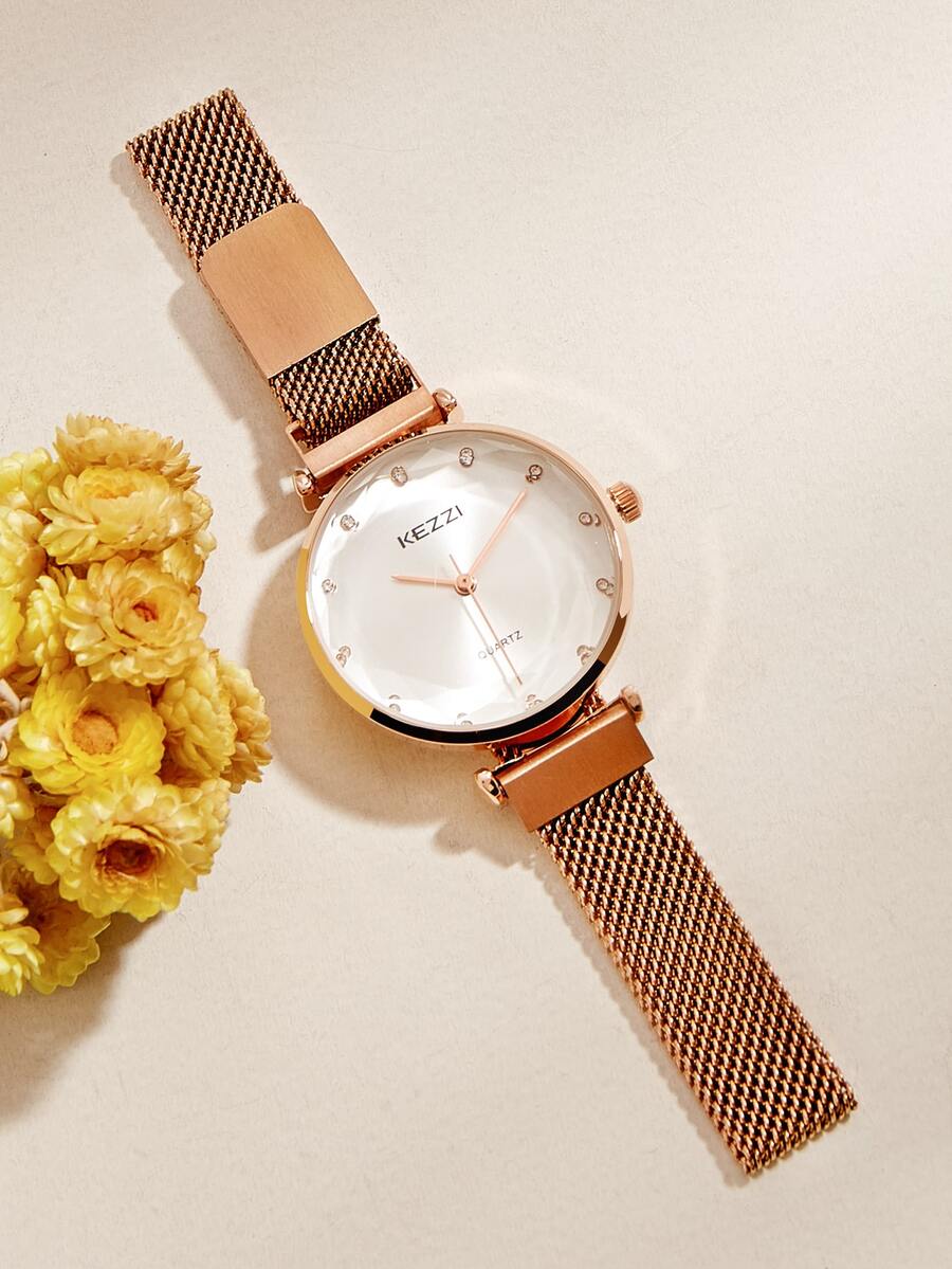 KEZZI Rhinestone Decor Mesh Strap Quartz Watch