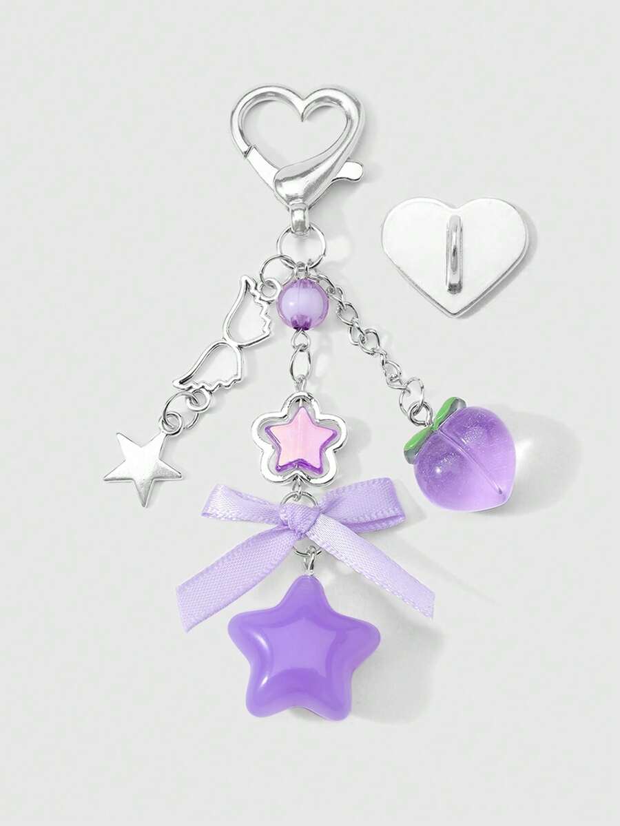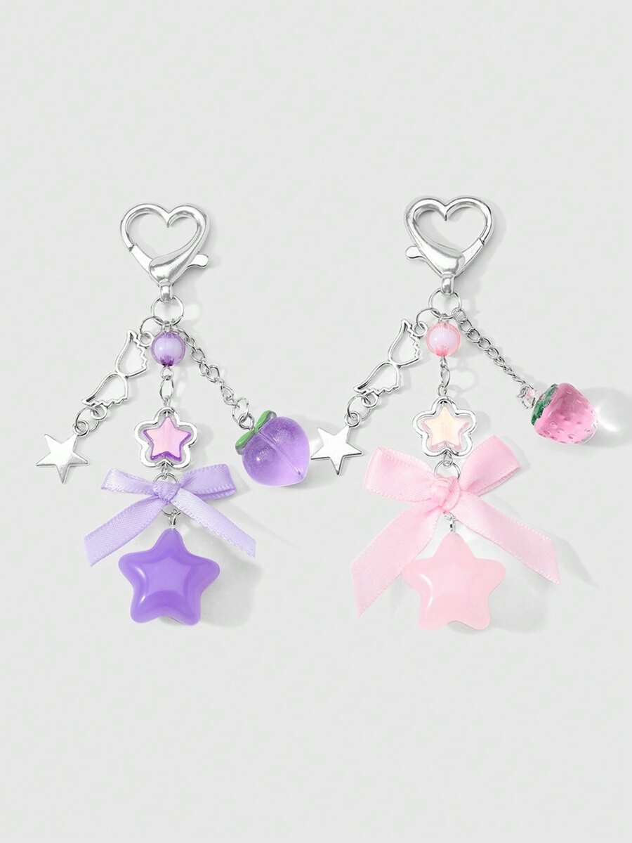 Kawaii 1 New Sweet Girl, Cute And Versatile, Exquisite And High-Value Purple/Pink Hollow Wings, Acrylic Round Beads, Strawberry Peach Webbing, Bow, Star Pendant, DIY Keychain, Bag Pendant, Water Cup Pendant, Mobile Phone Pendant, Fixed And Pasted Love Accessories, Suitable For Sisters/Girlfriends/Couples, Girls And Ladies Daily Wear, Holiday Gifts