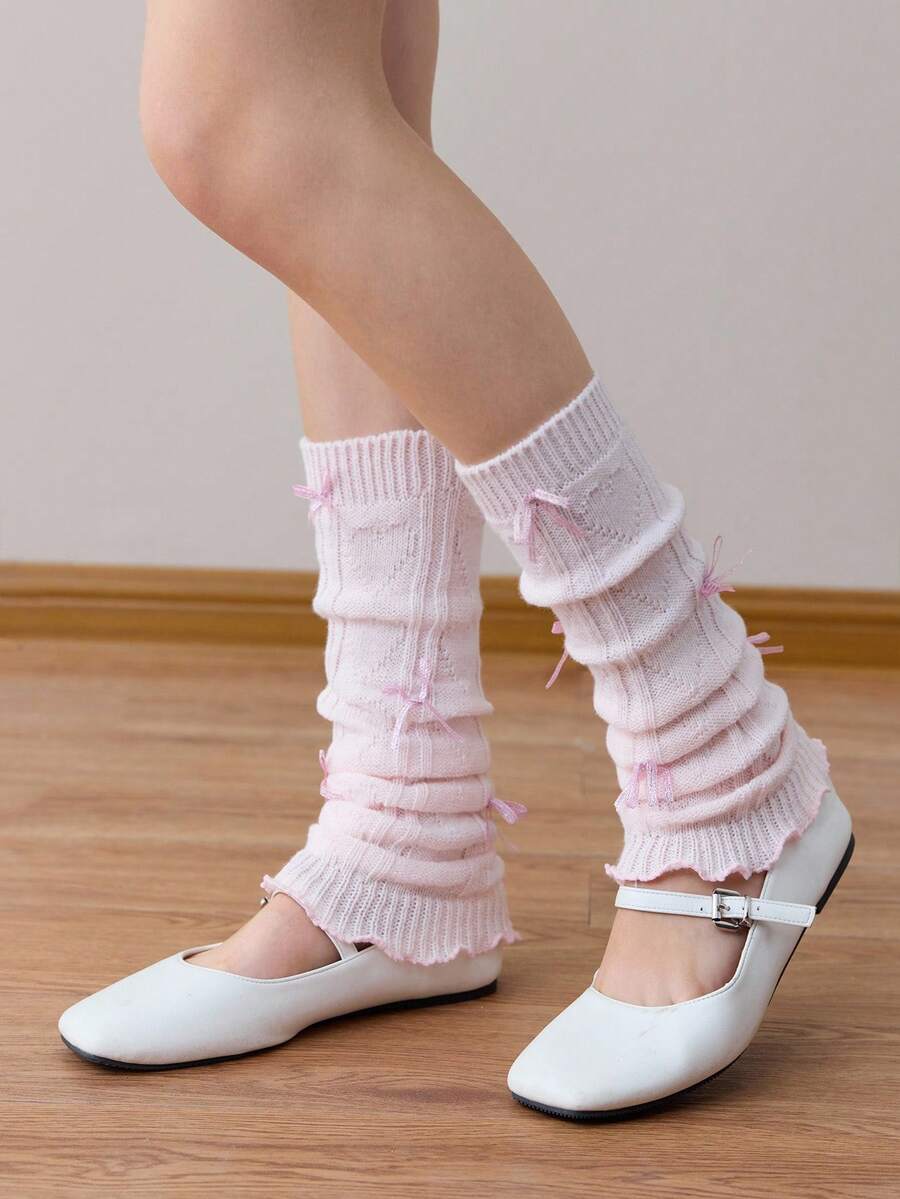 Kawaii 1 Pair Cute Bow Leg Warmers For Women, Suitable For Wearing With Skirts