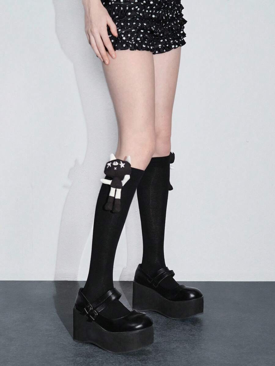 Kawaii 1 Pair Gothic Black Breathable Socks, Paired With Funny Black & White Cyclops Monster Design, Suitable For Women's Y2K Punk Style, All Season Mid-Calf Socks
