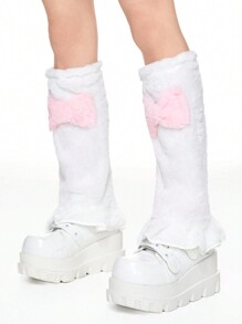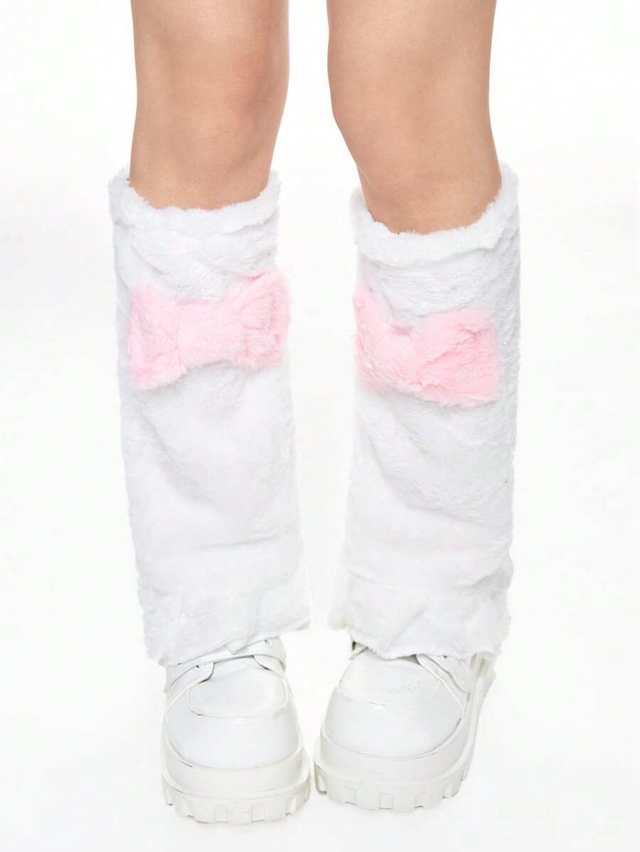 Kawaii 1 Pair Women's Bowknot Fuzzy Leg Warmers For Autumn/Winter Valentines