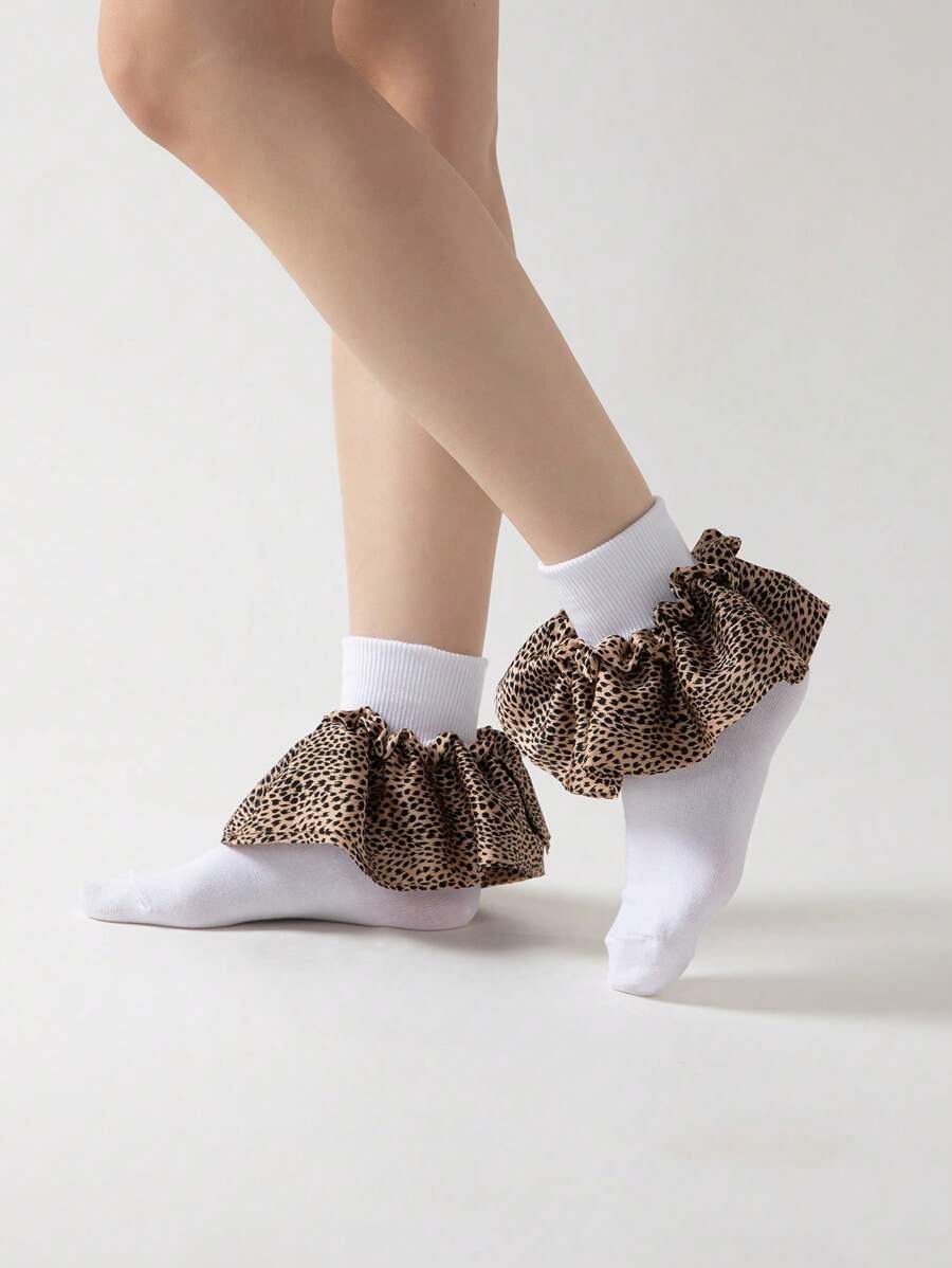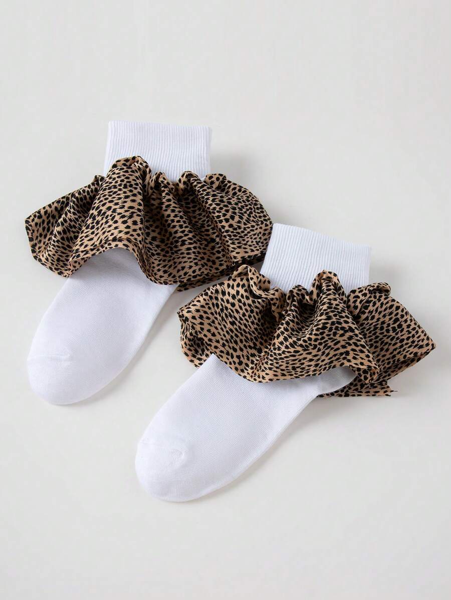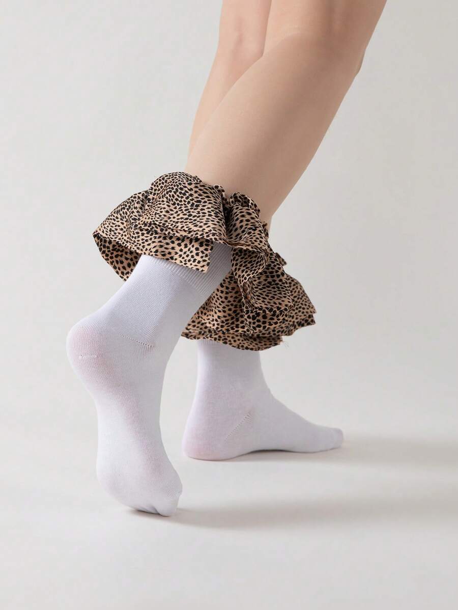 Kawaii 1 Pair Women's Fashion Contrast Color Print Ruffle Mid-Calf Socks