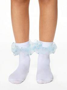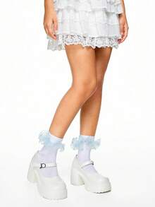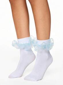 Kawaii 1 Pair Women's Lace Trim Reversible Mid-Calf Socks, Suitable For All Seasons