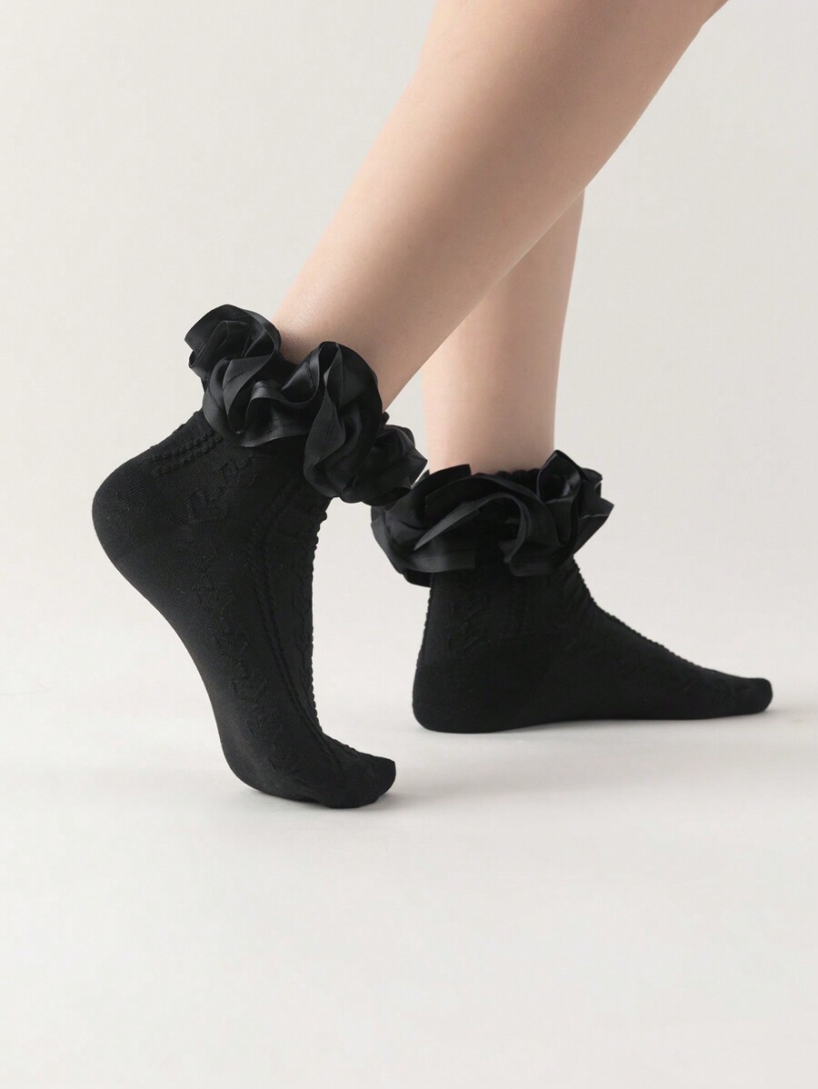 Kawaii 1 Pair Women's Solid Color Fashion Mid-Calf Socks, Suitable For Daily Wear