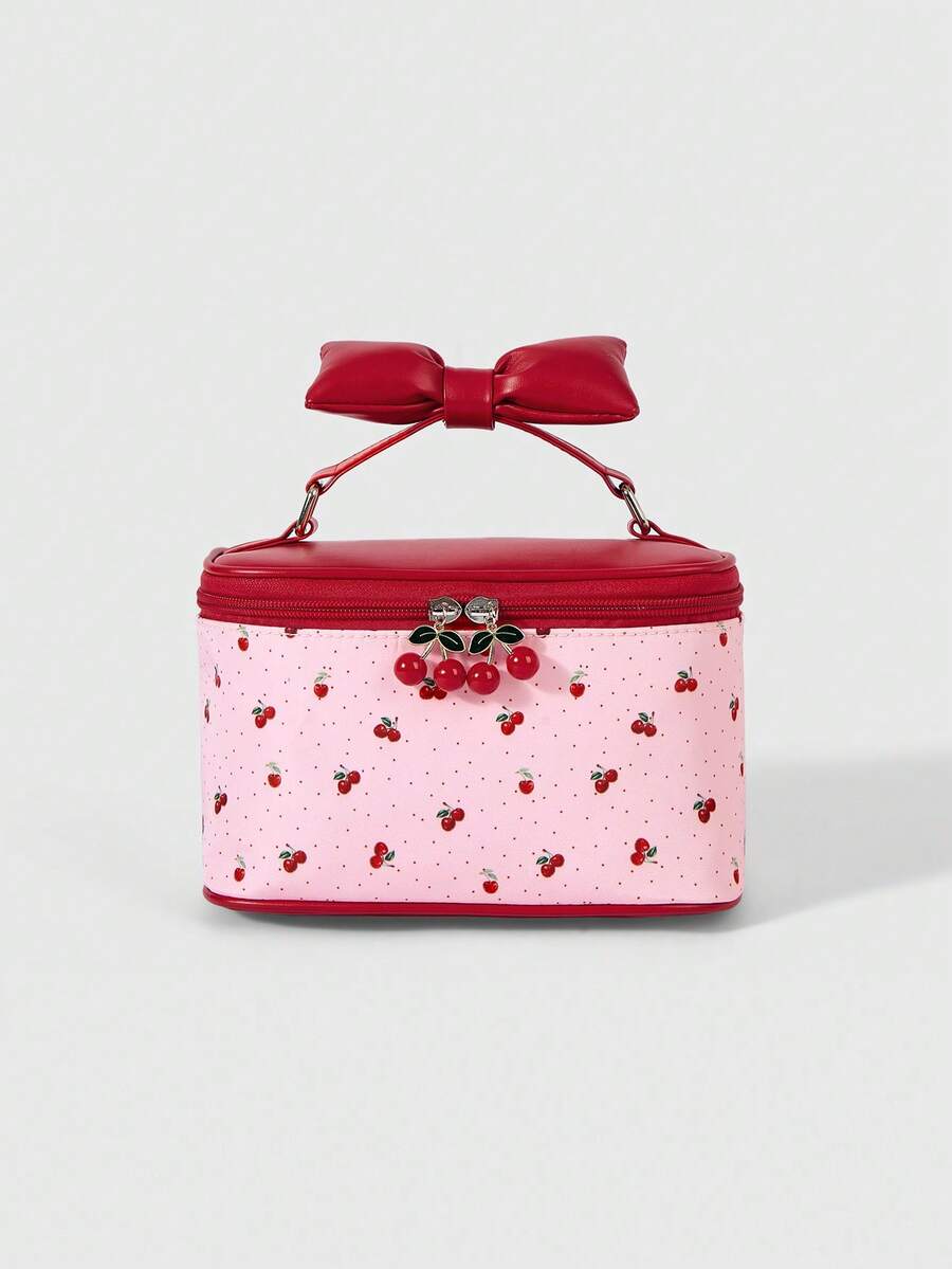 Kawaii 1 Personalized Cherry Pattern Women's Cosmetic Bag, Portable Travel Toilet Bag, Soft Multi-Functional Large-Capacity Embroidered Cosmetic Bag, Suitable For Daily Use, For Family, Friends, Mothers, Significant Others, Can Be Mother's Day, Valentine's Day, Nurses' Day, Teachers' Day, Christmas, Anniversary, Birthday Gifts