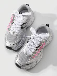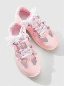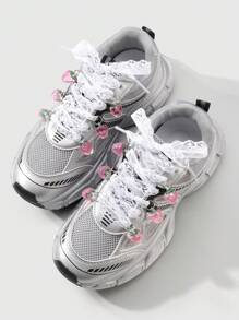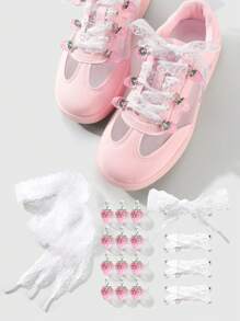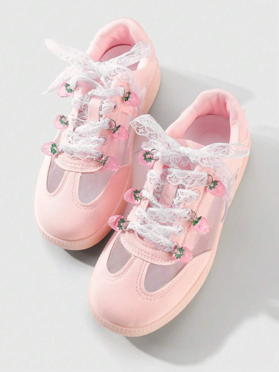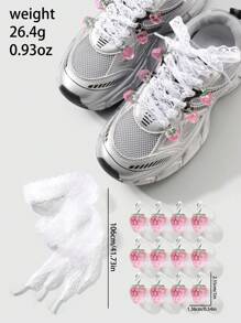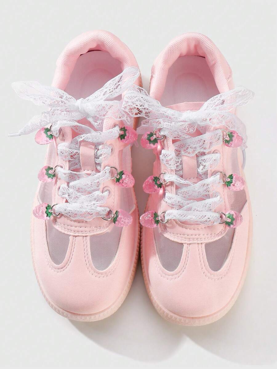 Kawaii 1 Set Includes: 1 Pair Korean Style Delicate Sweet High-Quality White Mesh Shoelaces + Realistic Resin Strawberry Pendant Shoes/Boots Decoration, Suitable For Women, Everyday Wear Or Holiday Gift