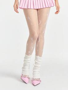 Kawaii 1 Set Starry Sky Fishnet Leg Warmers + Solid Color Knit Leg Warmers, Y2K Baddie Style Outfit Combination, Suitable For Daily Street Wear
