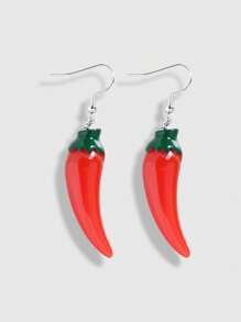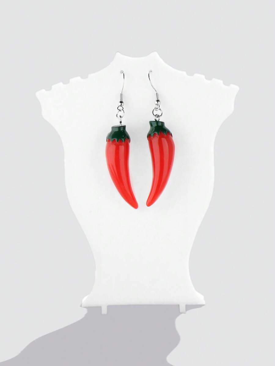 Kawaii 1pair Cute Faux Resin Vegetable Chili Pepper Pendant Earrings, Spring Summer