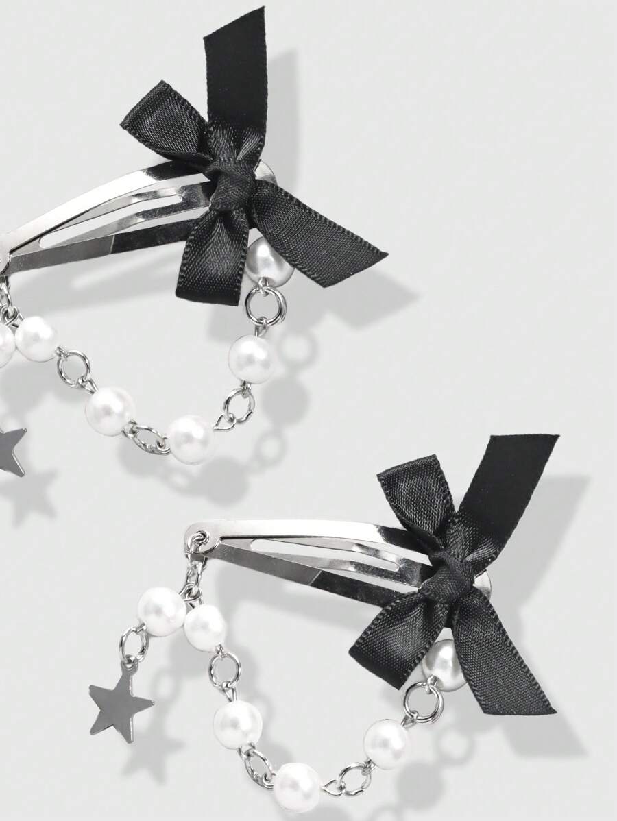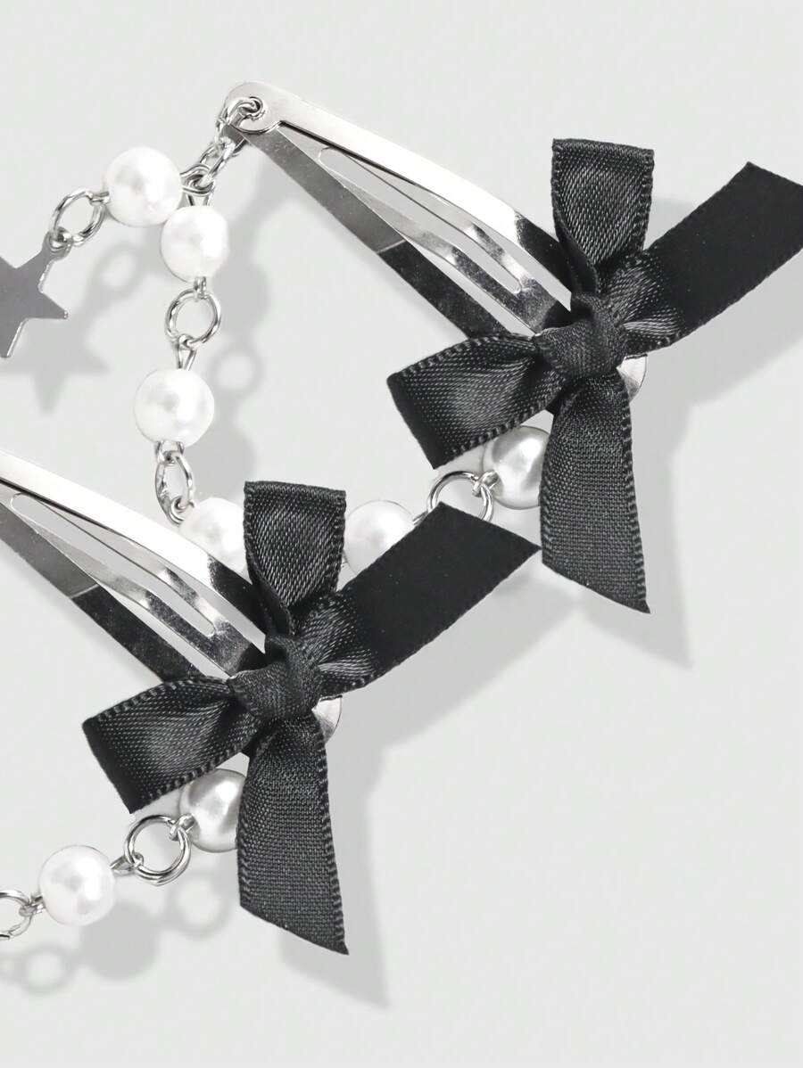 Kawaii 1pair Cute Style Black Bow Hair Clips Claw Clips Hair Claws Hair Barrettes