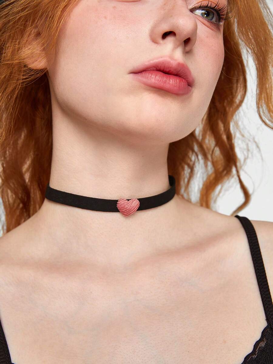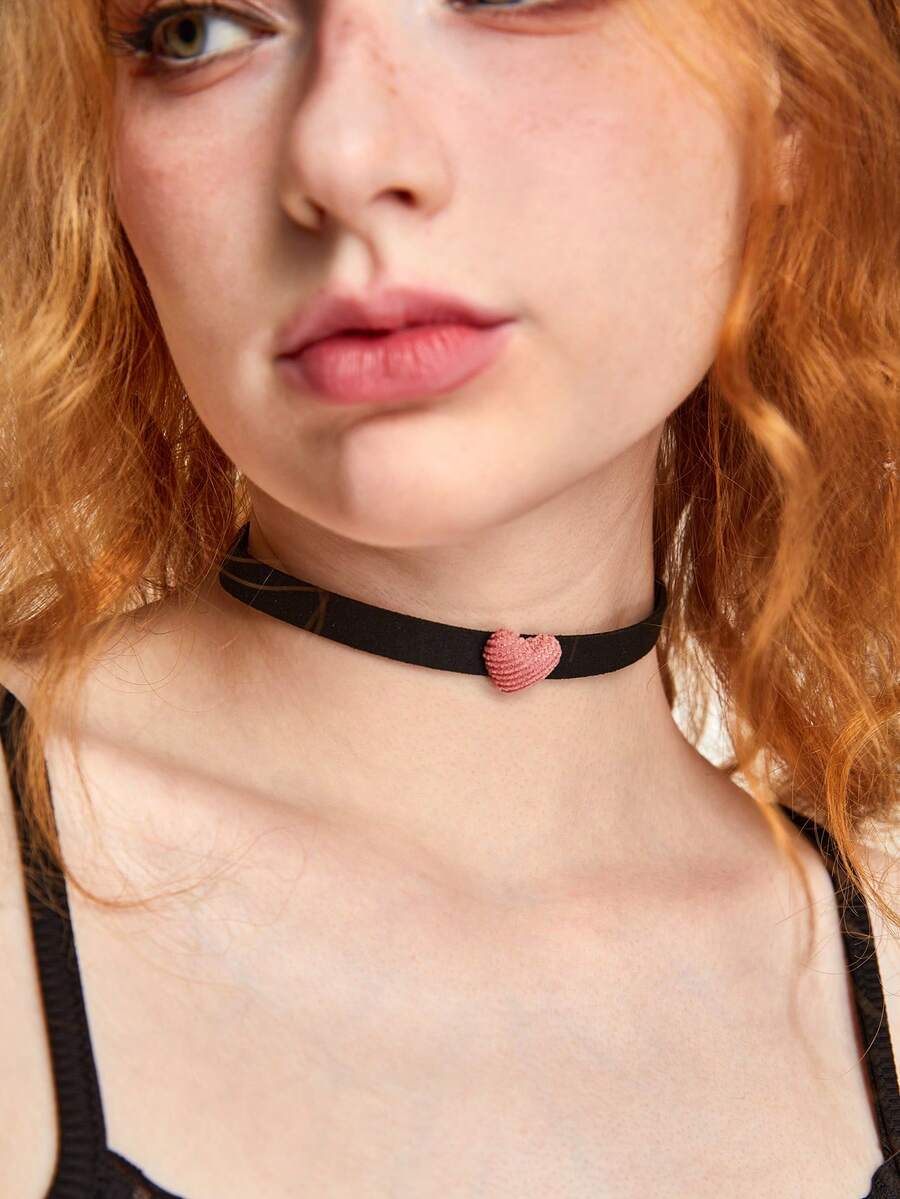 Kawaii 1pc Black & Pink Heart Shaped Dog Collar