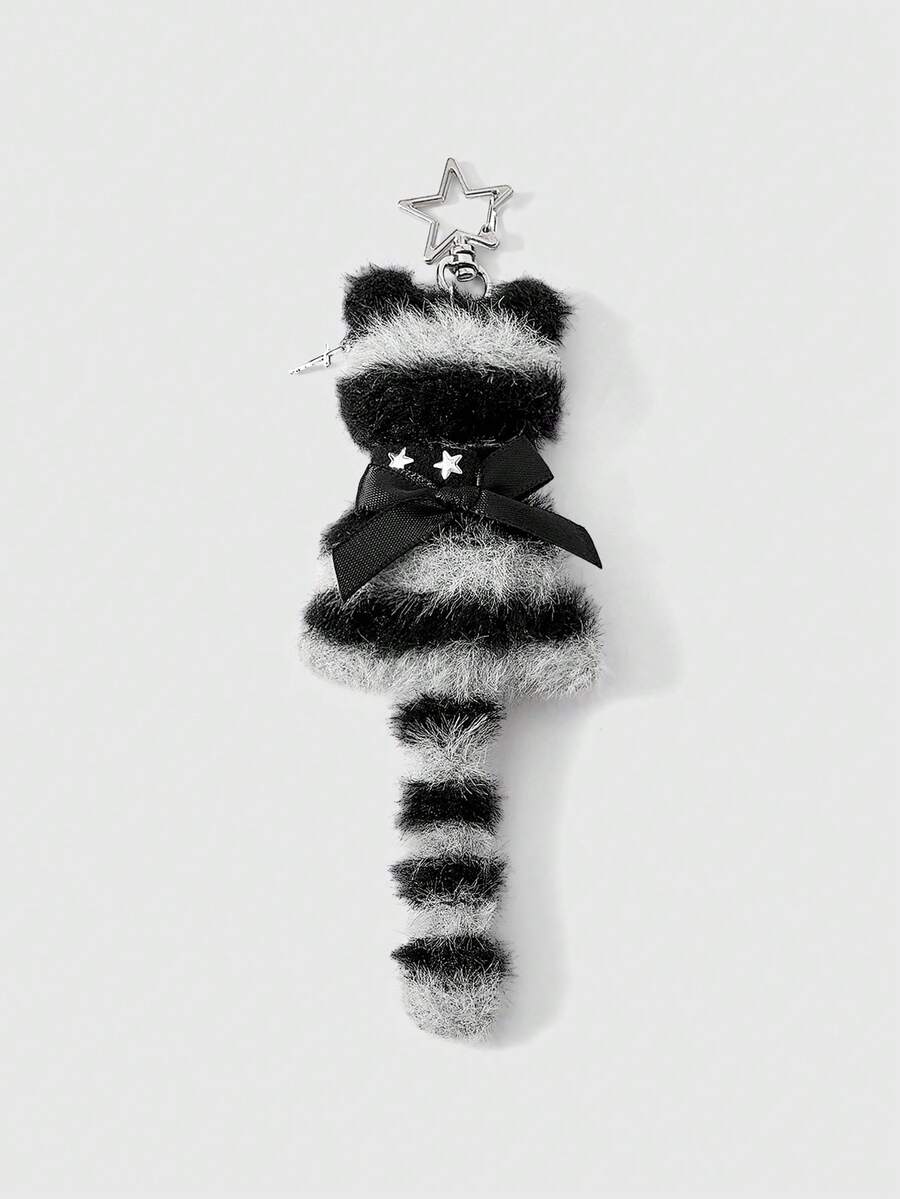 Kawaii 1pc Black Y2K Punk Style Metal Rivet Pentagram Plush Cat Keychain, Fashionable Minimalist Landmine Series Mass-Produced, Suitable For Hanging On Bags, Pants, College, Shopping, Dates, Etc.