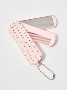 Kawaii 1pc Bowknot Design Print Folding Comb, Portable Travel Home Combs