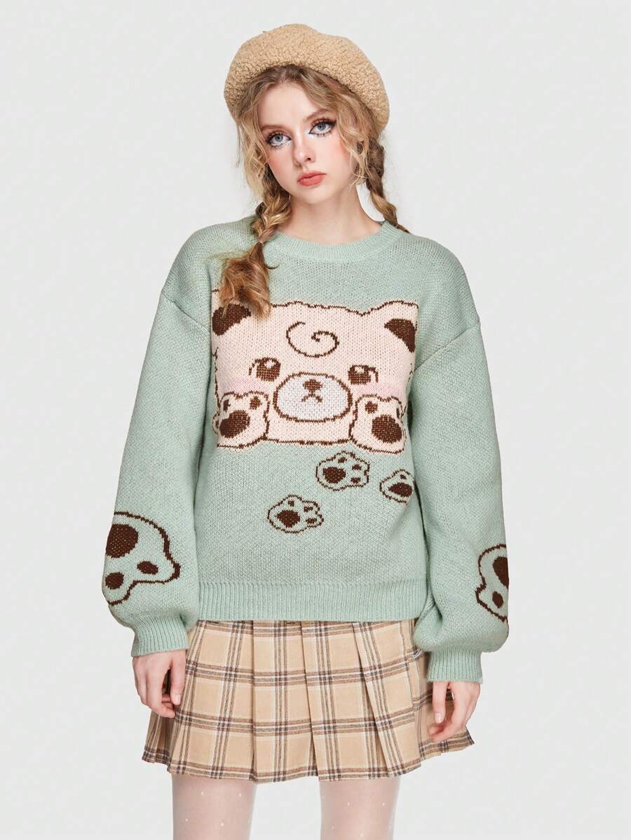 Kawaii 1pc Cartoon Pattern Drop Shoulder Sweater