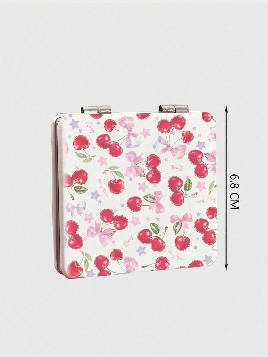 Kawaii 1pc Cherry & Bowknot Decor Compact Mirror (Random Pattern Placement) School Decor School Surprise Dormitory Decor Back To School Home Decor Room Decor School Supplies