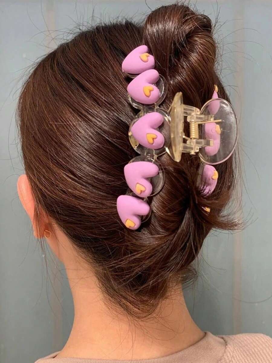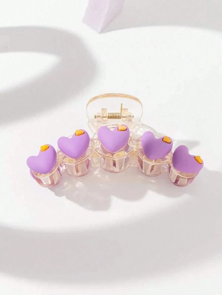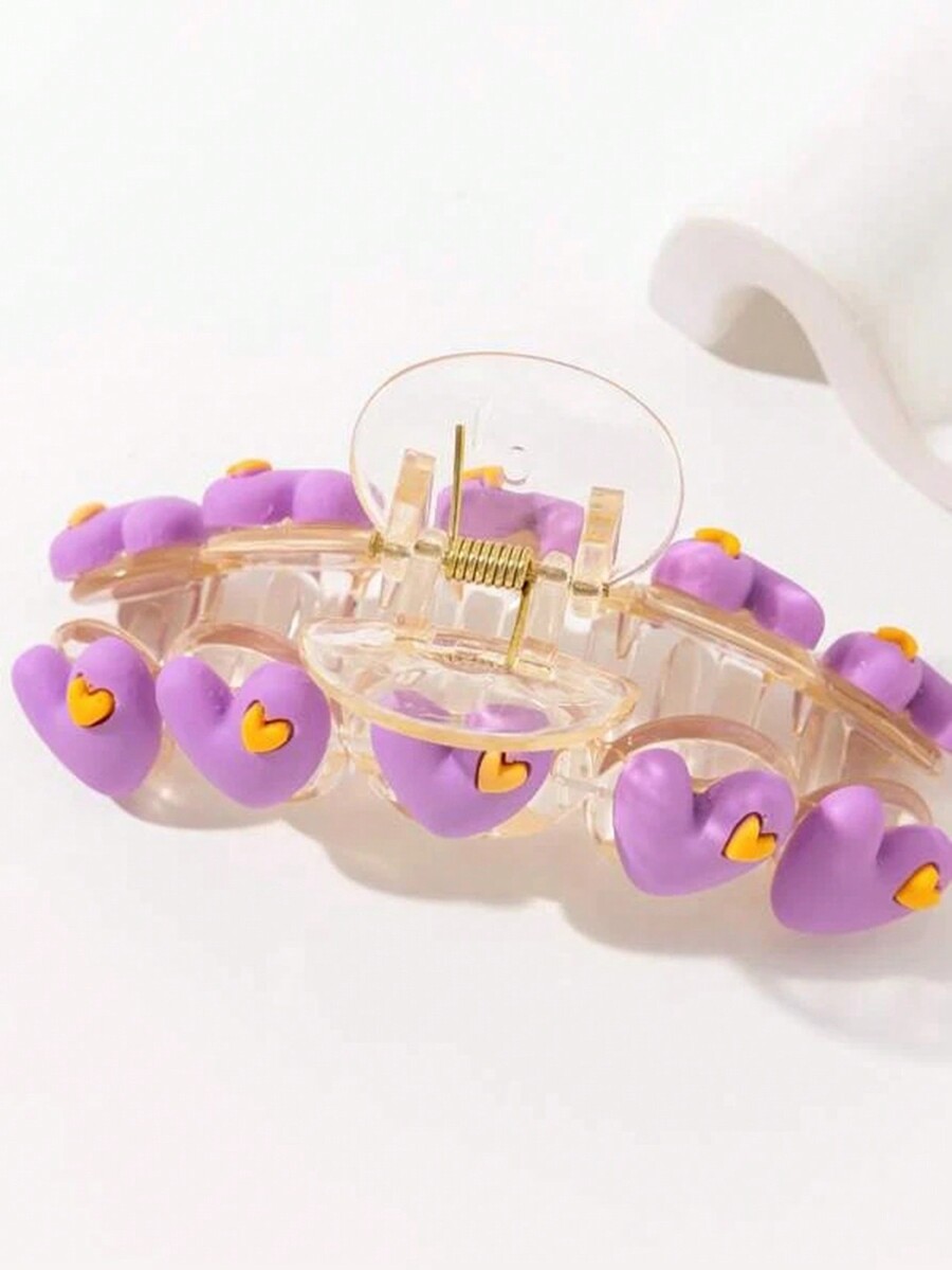 Kawaii 1pc Cute ABS Hair Claw With Heart Decoration, Suitable For Clamping Hair On The Back Of The Head, Ideal For Summer
