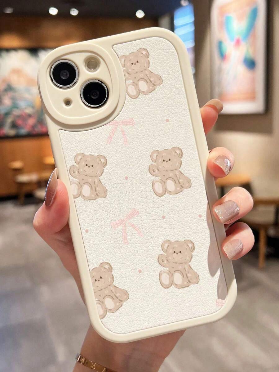 Kawaii 1pc Cute Bear Pink Bow Apple Phone Case Compatible With IPhone 11 12 13 14 15 Pro Max