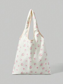 Kawaii 1pc Cute Foldable Floral Print Tote Bag For Women