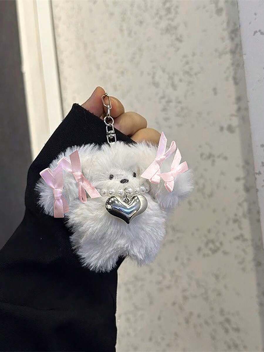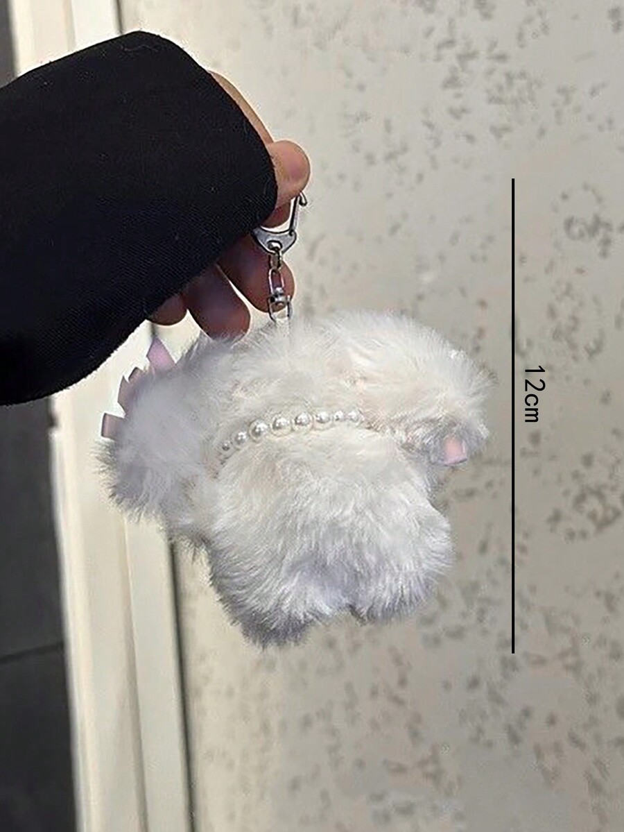 Kawaii 1pc Cute Plush Korean Style Ribbon Pearl Cartoon Puppy Doll Keychain, Earphone Keyring Valentines