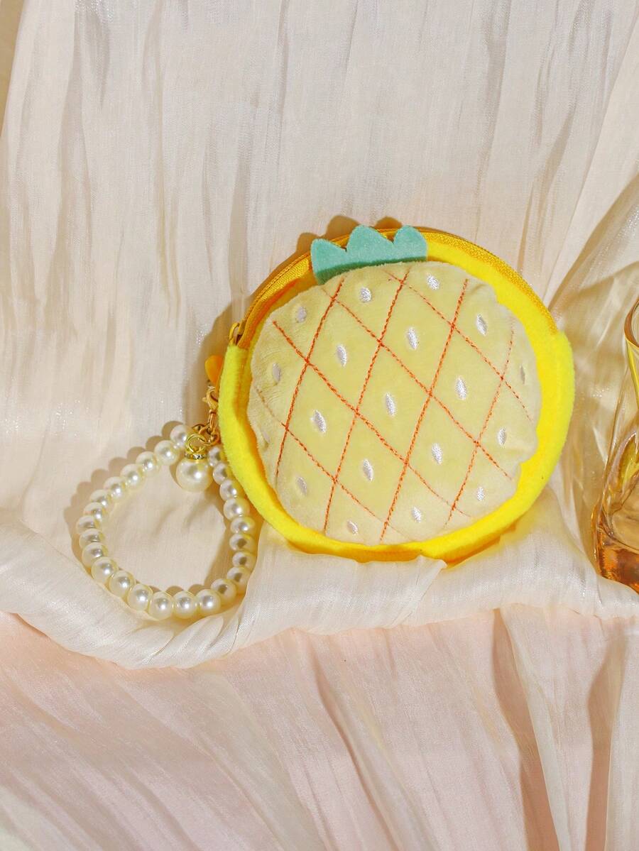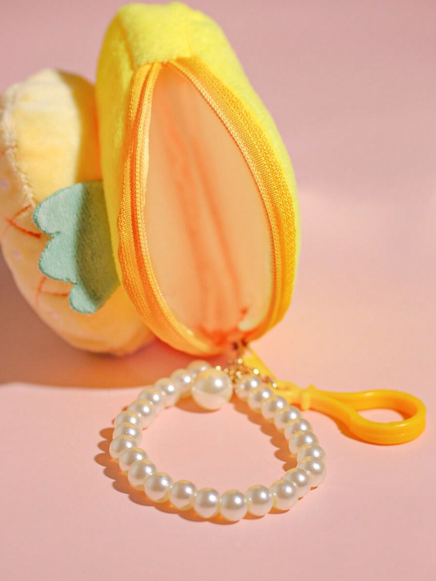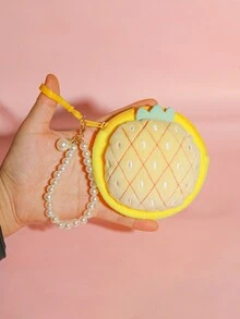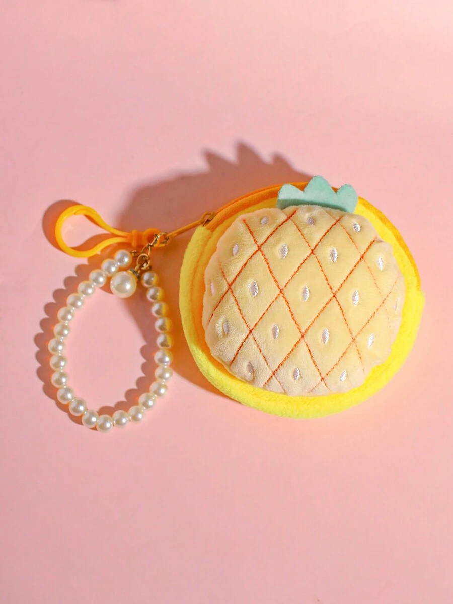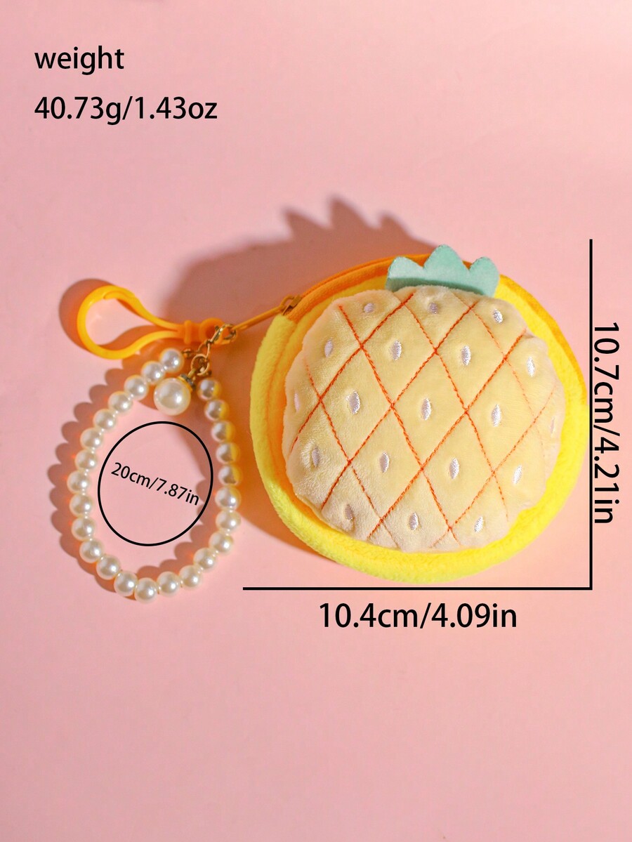 Kawaii 1pc Cute Plush Pineapple Shaped Keychain With Beaded Chain For Bags