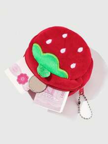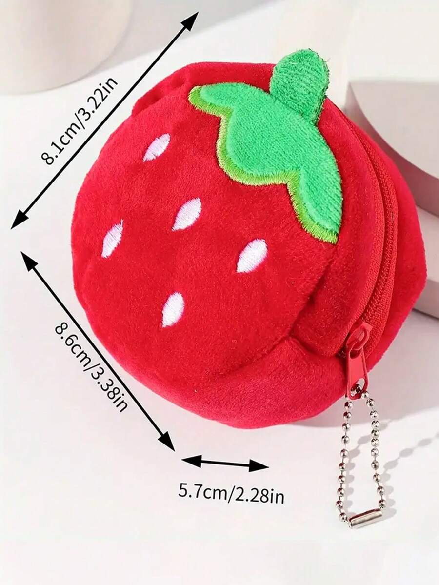 Kawaii 1pc Cute Strawberry Plush Coin Purse With Keychain - Lightweight & Fashionable Wallet For Women And Girls - Birthday Gift Valentines