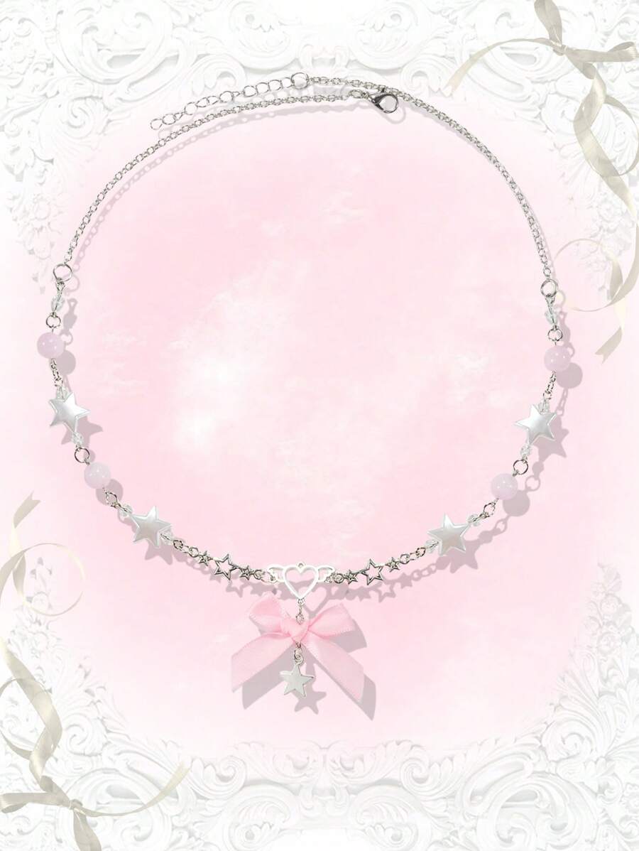 Kawaii 1pc Cute Style Star & Bowknot Pendant Necklace Valentines