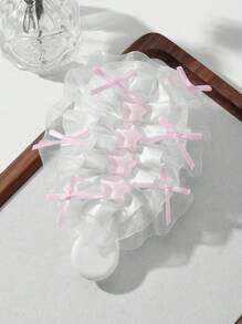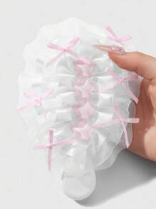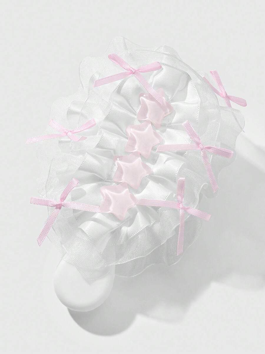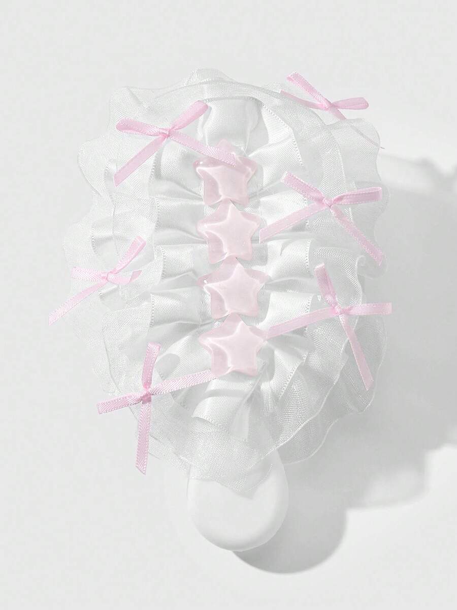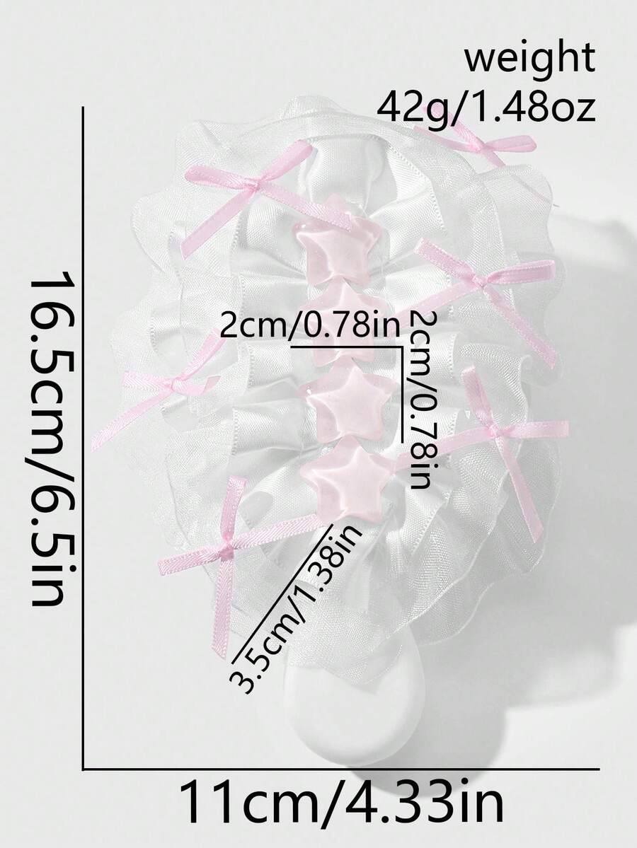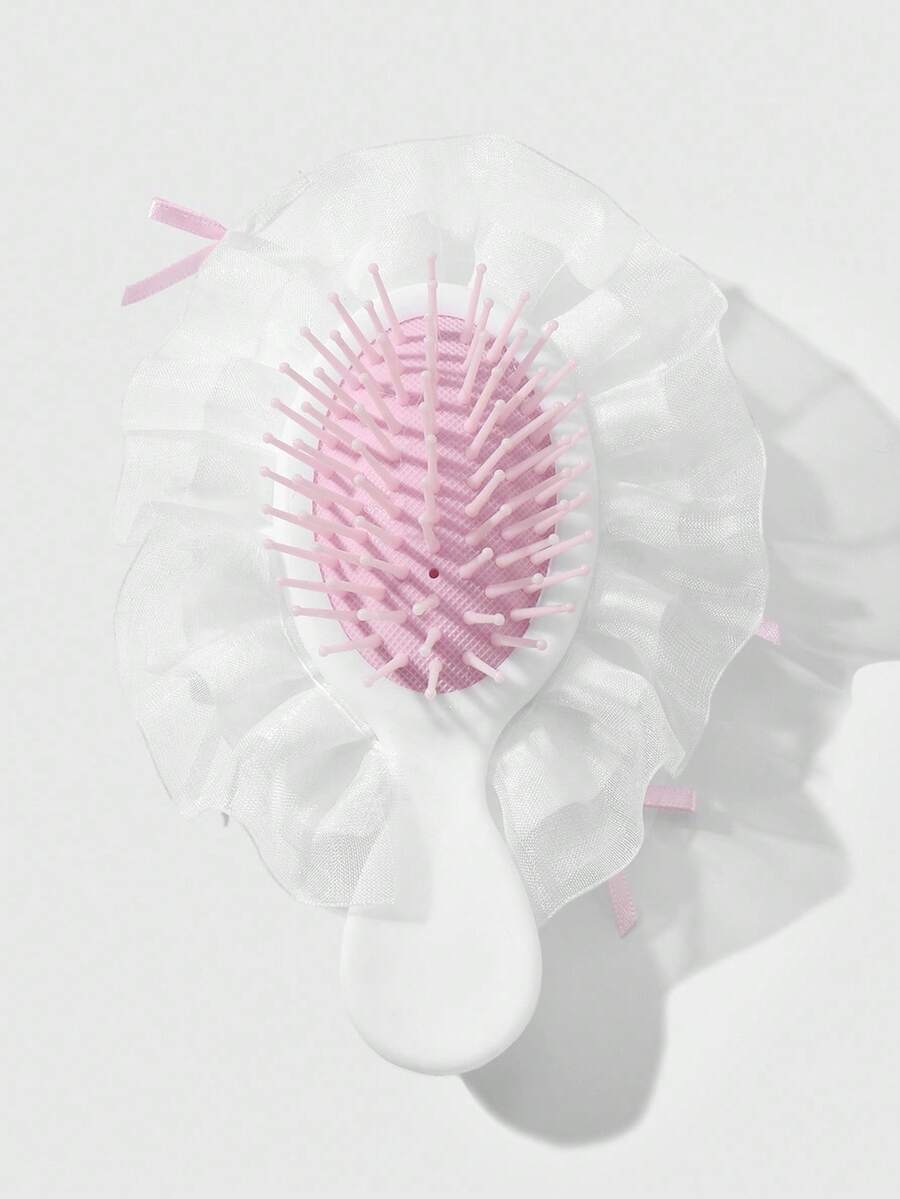 Kawaii 1pc Cute & Sweet Mini Cartoon High-Quality Pink & White Mesh Lace Ribbon Bow Resin Glitter Star Decor Mini Air Cushion Massage Hair Comb, Suitable For Women/Girls Daily Use, Holiday Gift
