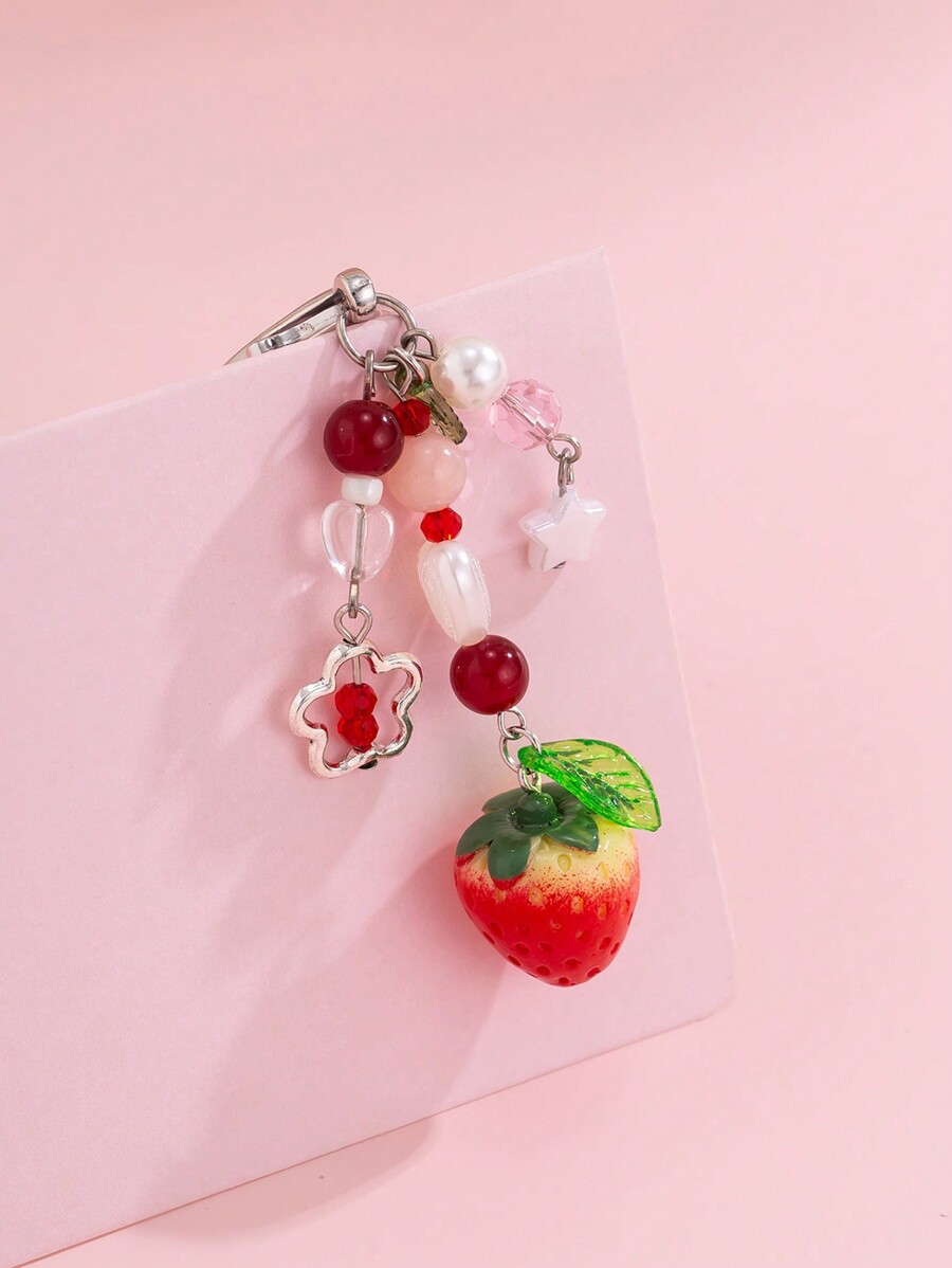 Kawaii 1pc Cute & Sweet Style Strawberry & Star & Crystal Tassel Pendant Keychain Valentines