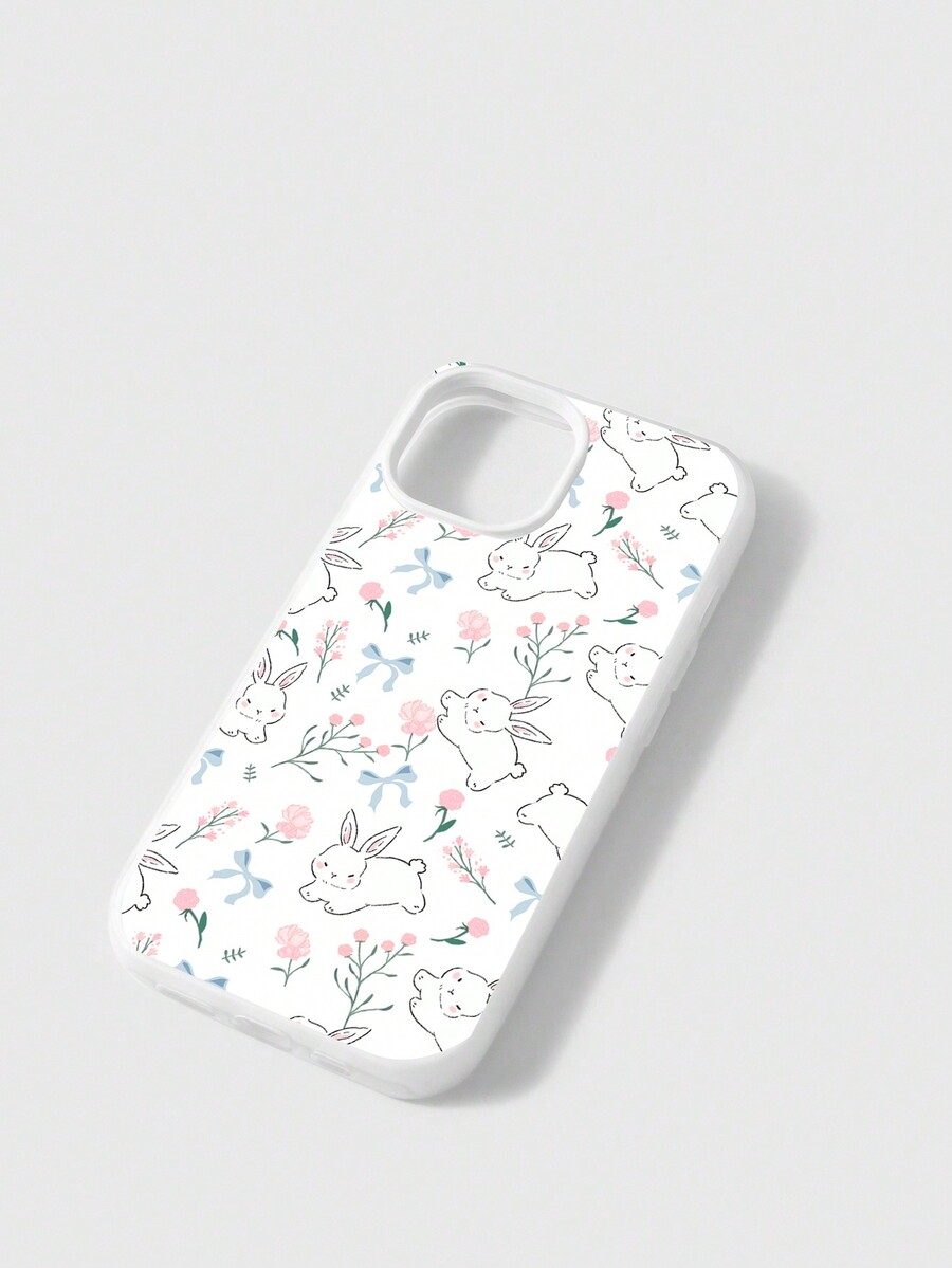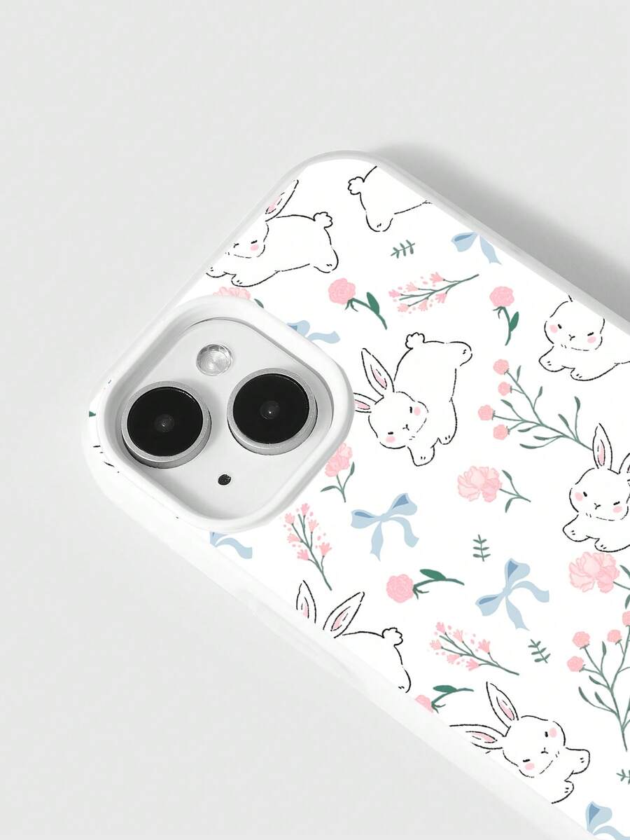Kawaii 1pc Cute White Rabbit Bow Cherry & Apple Pattern Phone Case Compatible With IPhone 11 12 13 14 15 Pro Max 16