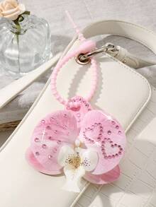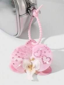 Kawaii 1pc Elegant Minimalist Acrylic Rhinestone Heart-Shaped Butterfly Orchid Adjustable Silicone Tie DIY Keychain Bag Charm, High Quality, Suitable For Women, Daily Wear, Holiday Gift