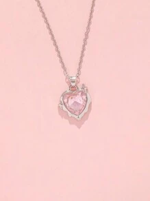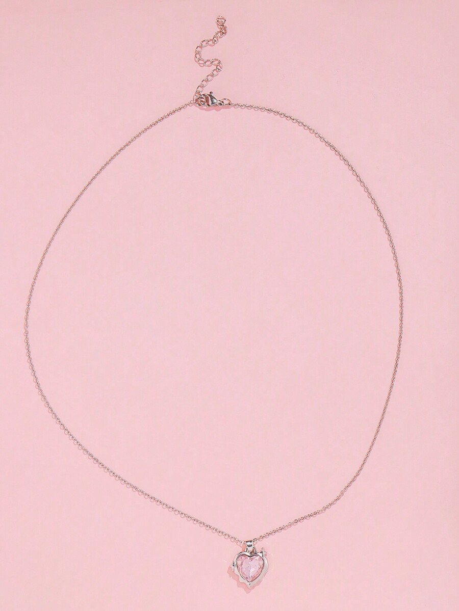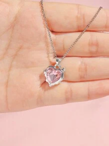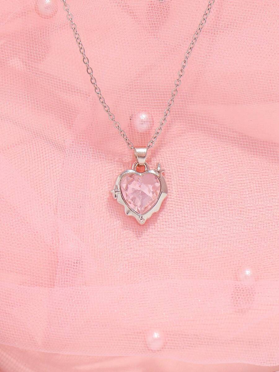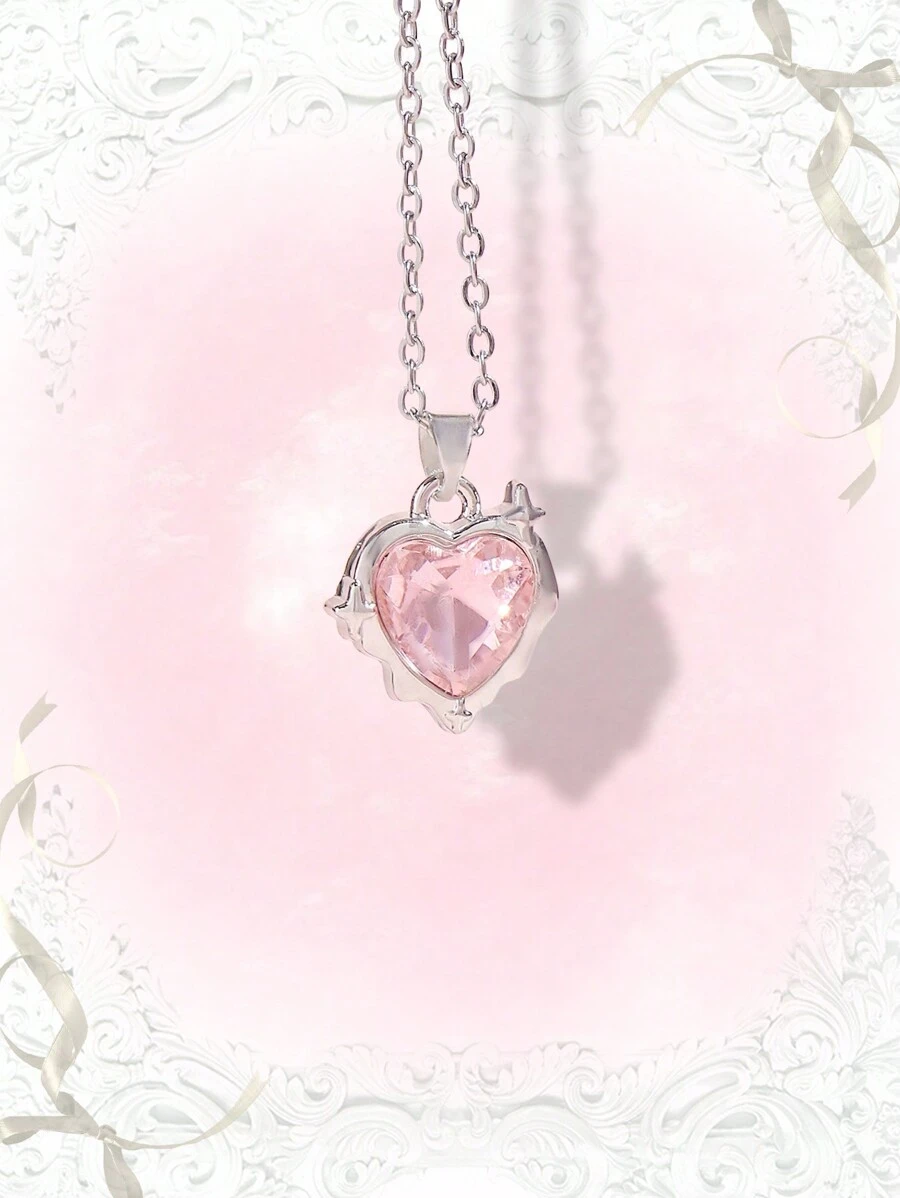 Kawaii 1pc European And American Gothic Romantic Pink Rhinestone Heart Pendant Necklace For Valentine's Day
