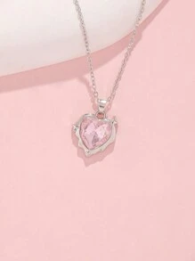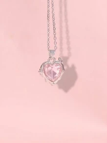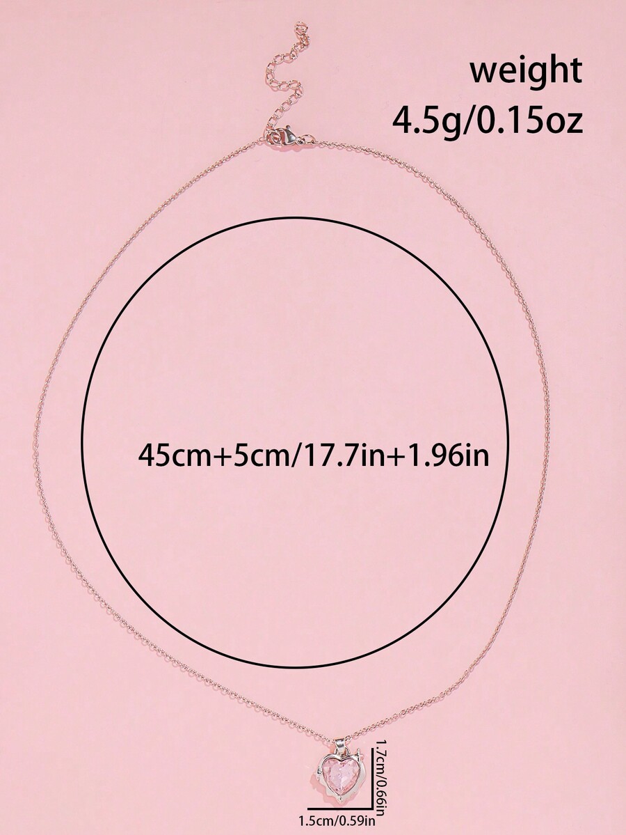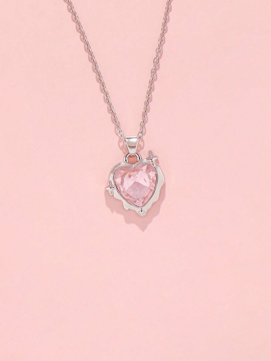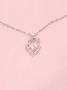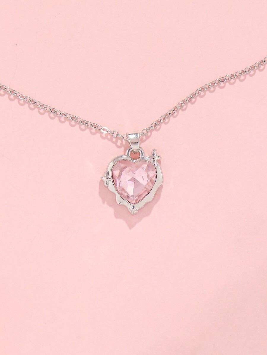 Kawaii 1pc European And American Gothic Romantic Pink Rhinestone Heart Pendant Necklace For Valentine's Day