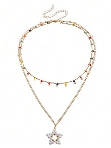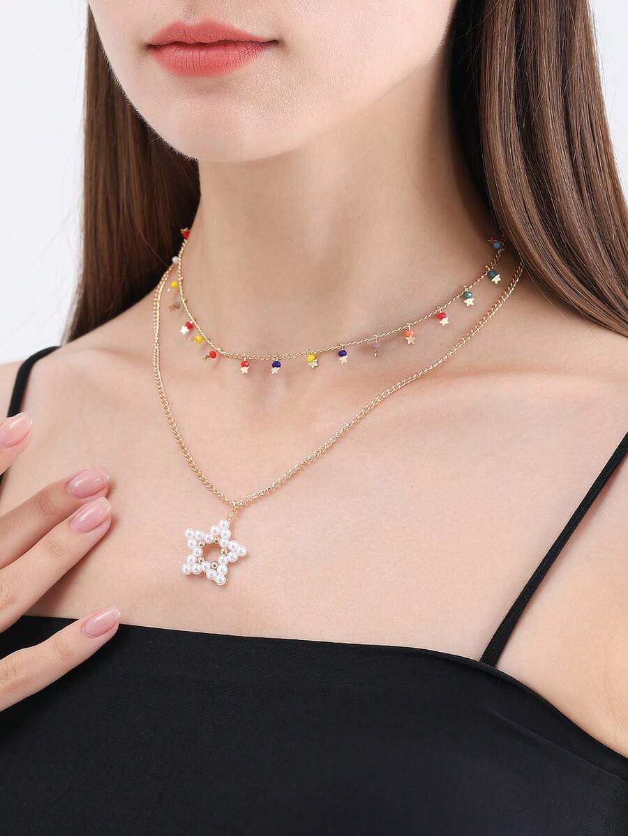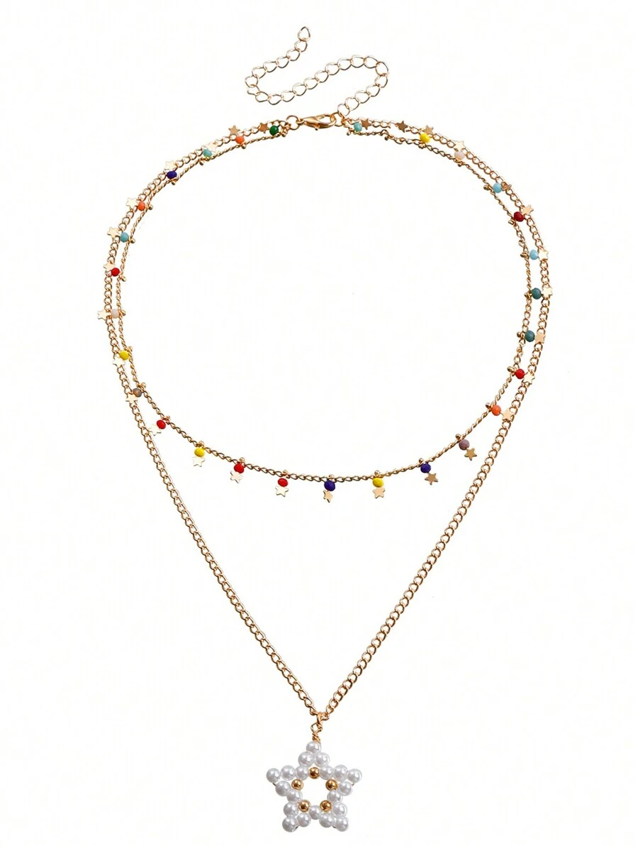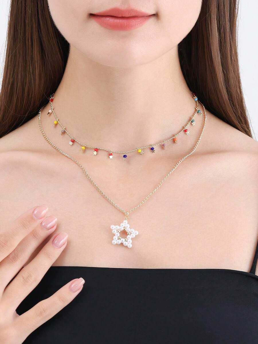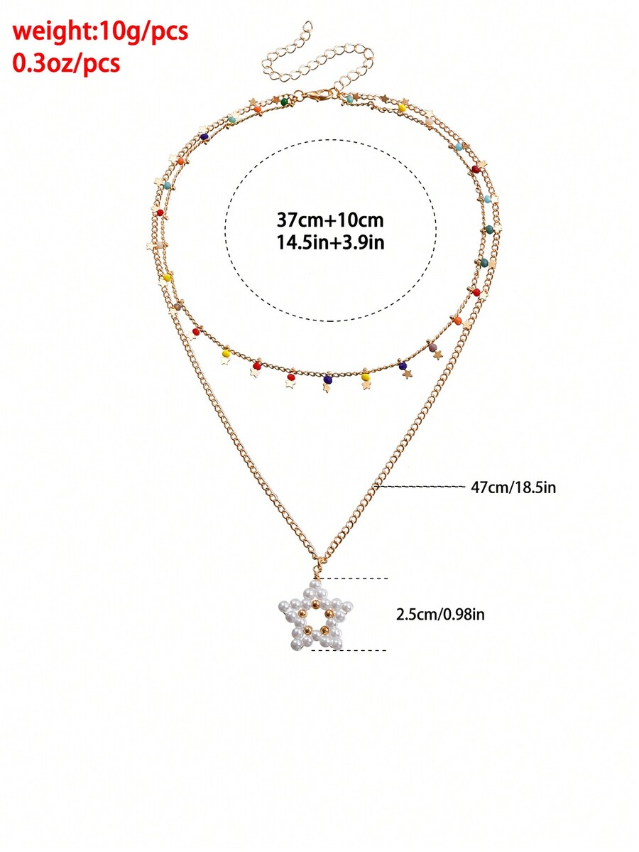 Kawaii 1pc Fashion Iron Alloy Star Charm Faux Pearl Decor Layered Necklace For Women For Daily Decoration