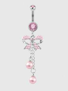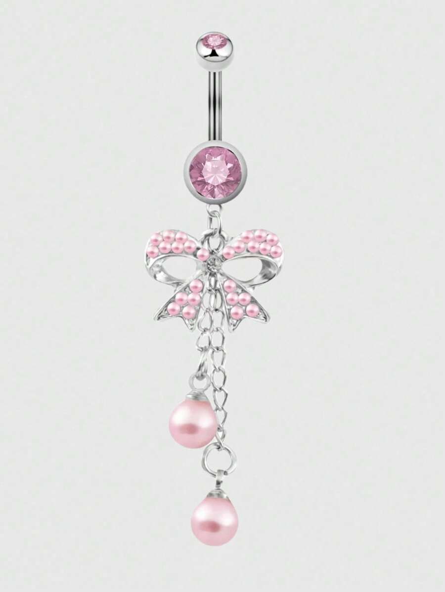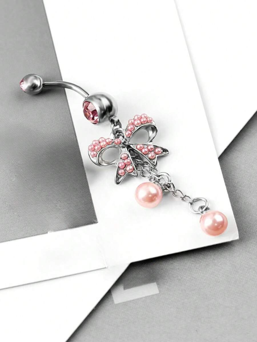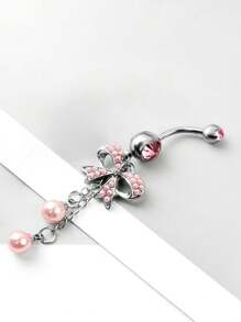 Kawaii 1pc Fashionable, Cute, Sexy And Elegant Rhinestone And Pearl Butterfly Belly Button Ring