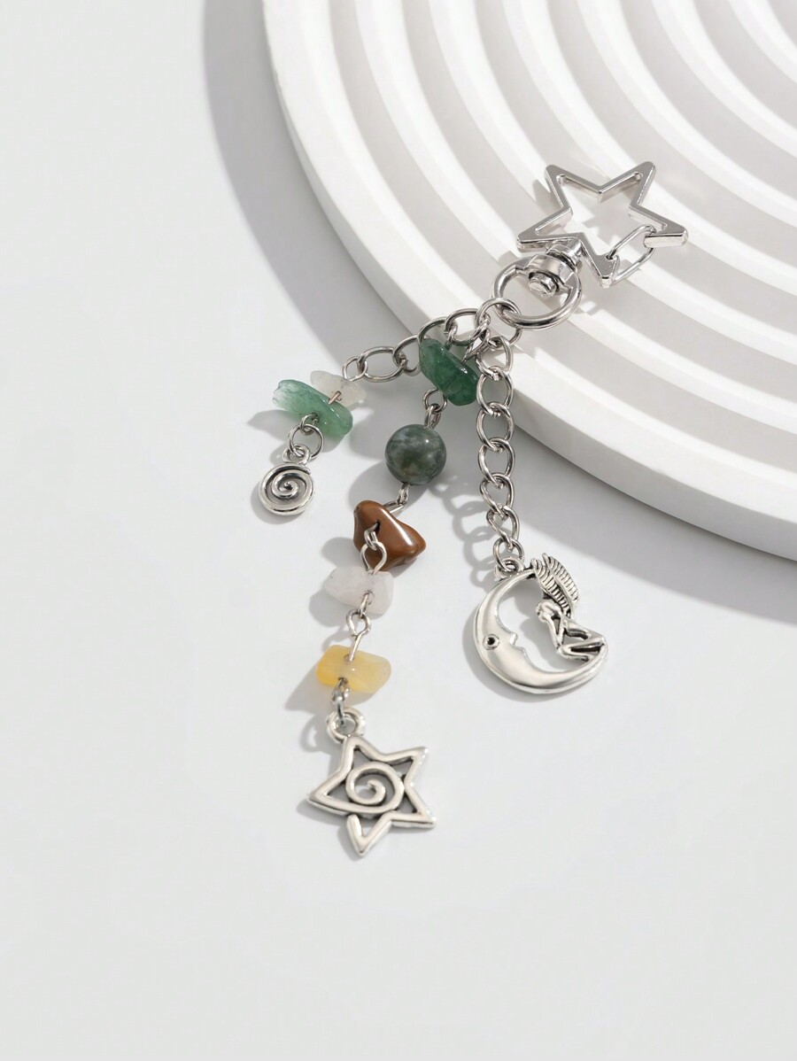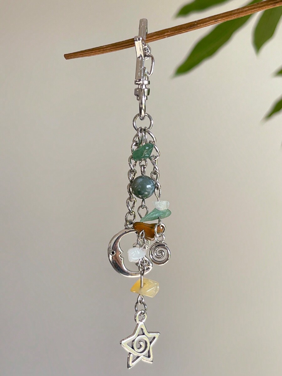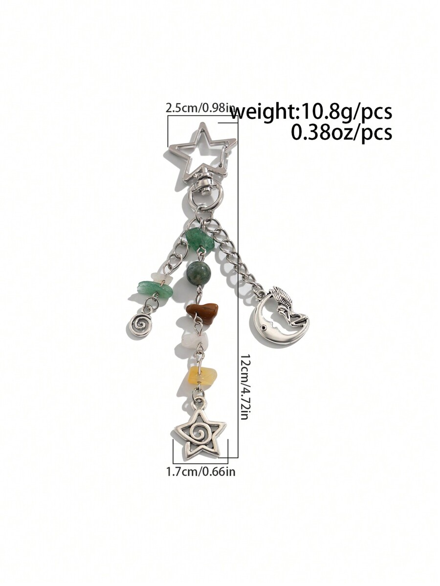 Kawaii 1pc Fashionable Hippie Geometric Swirl Star Moon Fairy Crystal Tassel Keychain Bag Charm
