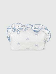 Kawaii 1pc Floral Bow Decor Makeup Bag,Portable Sweet & Fresh Ruffle Handbag,Highly Attractive Diamond Pattern Cosmetic Bag For Halloween And Christmas Festival