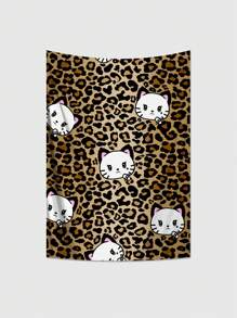 Kawaii 1pc Leopard Print Background With Lovely Cat Pattern Tapestry, Suitable For Living Room And Bedroom
