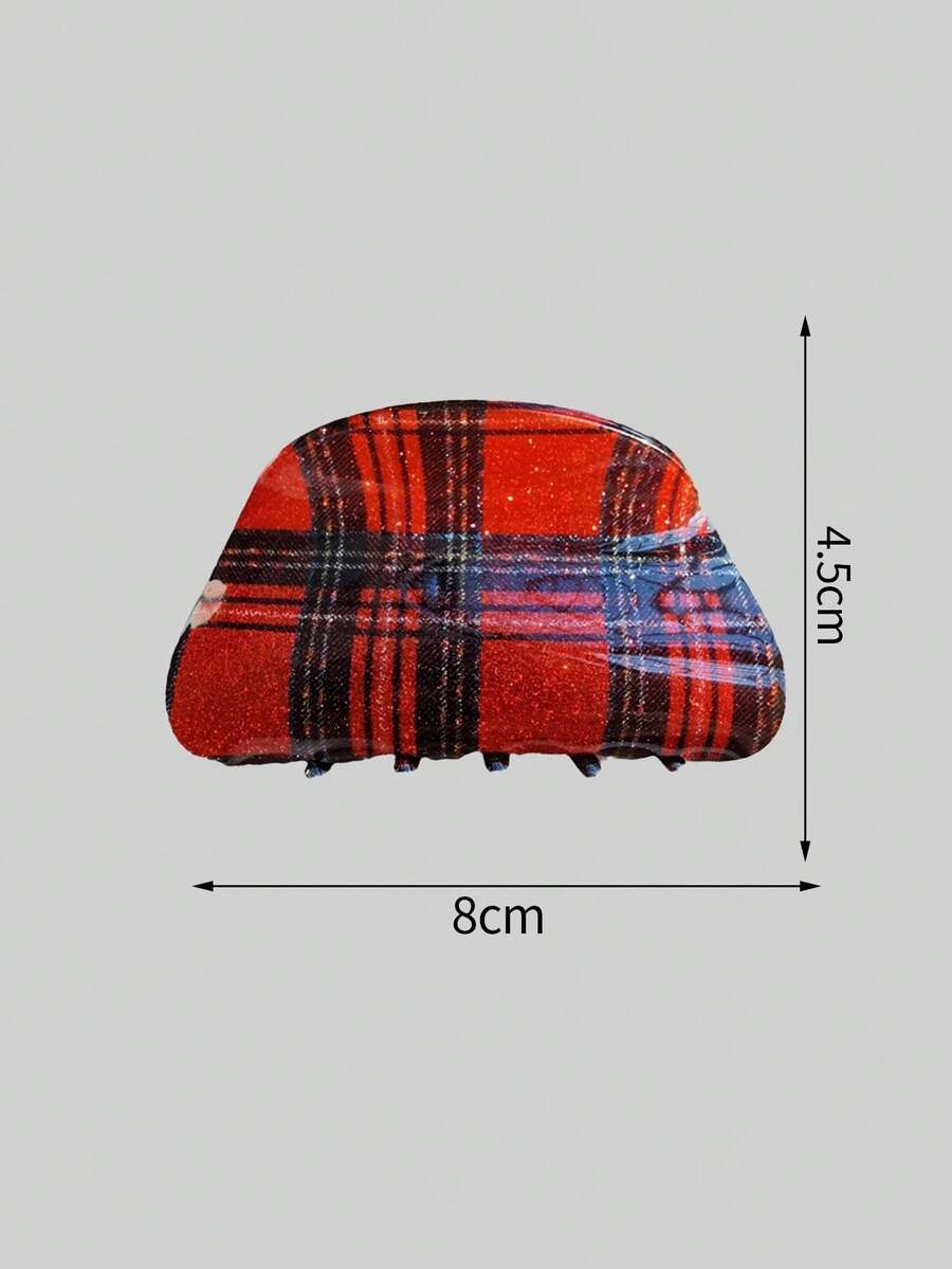 Kawaii 1pc Millennium Girl Vintage Hair Claw, Red Glitter Plaid Hair Claw For Updo Hairstyles
