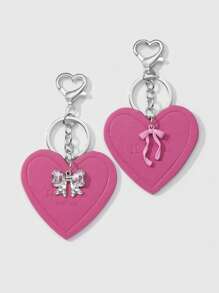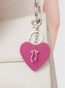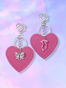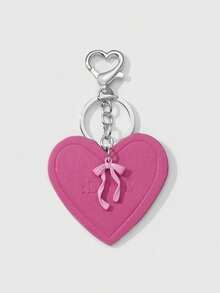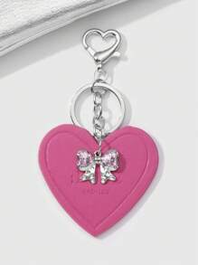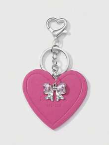 Kawaii 1pc Minimalist Casual Versatile Elegant College Style Rose Red Leather Heart Crystal Bow Heart Key Chain, Accessory, Suitable For Women, Daily Wear, Holiday Gift