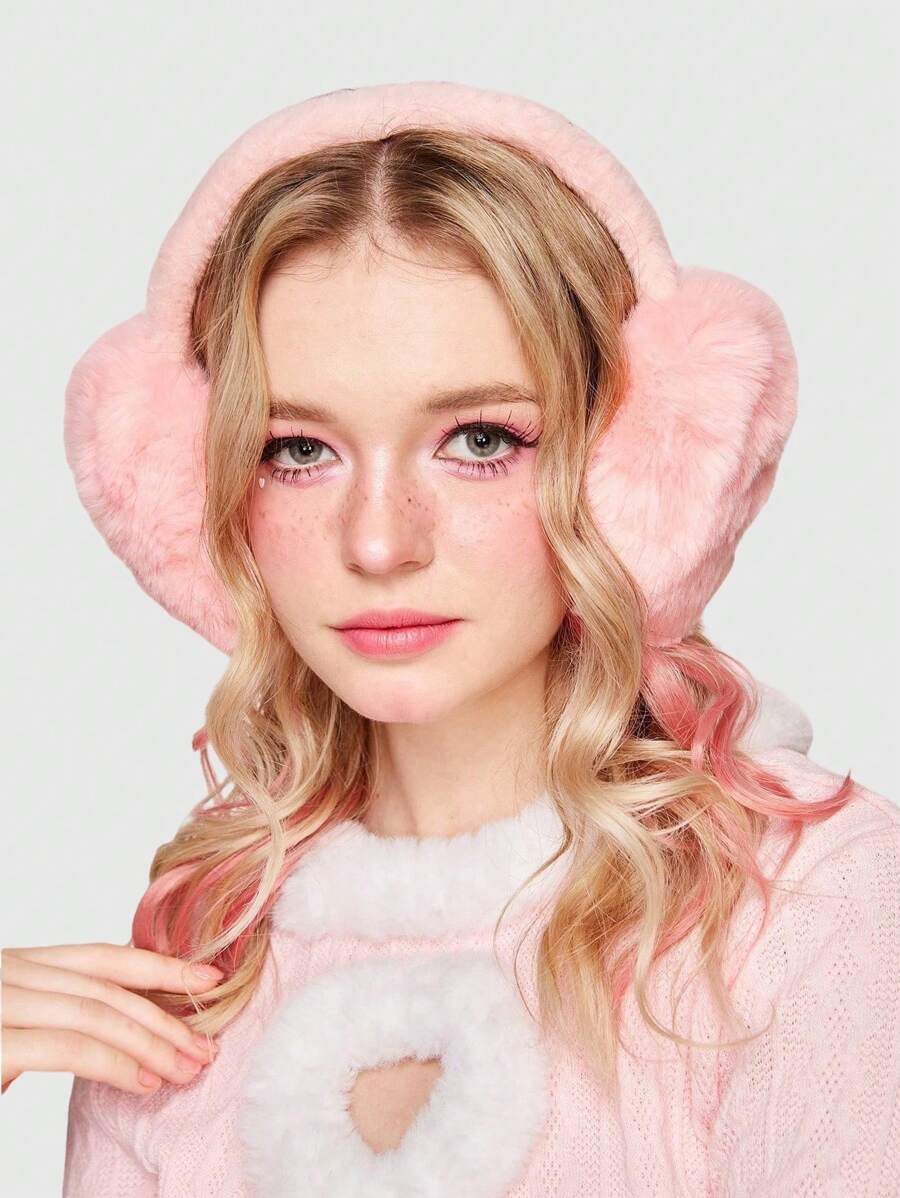 Kawaii 1pc Minimalist Solid Color Plush Earmuffs, Foldable Warm Ear Muffs For Winter, Cold-Proof Ear Warmers