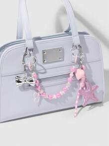 Kawaii 1pc Miu Style Sweet Girl Handmade Beaded Faux Pearl Acrylic Heart, Leather Star, CCB Bow Braided Rope DIY Bag Pendant/Keychain, Suitable For Women/Girls Daily Wear, Holiday Gift