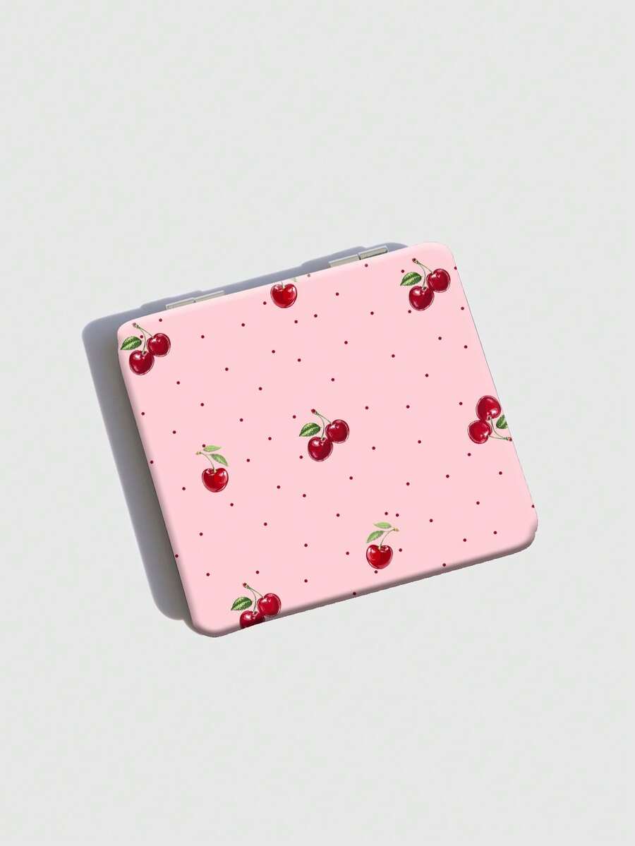Kawaii 1pc Polka Dot Cherry Heart Printed Square Makeup Mirror, Convenient Handheld For Girls To Touch Up (Pattern Placement Random)