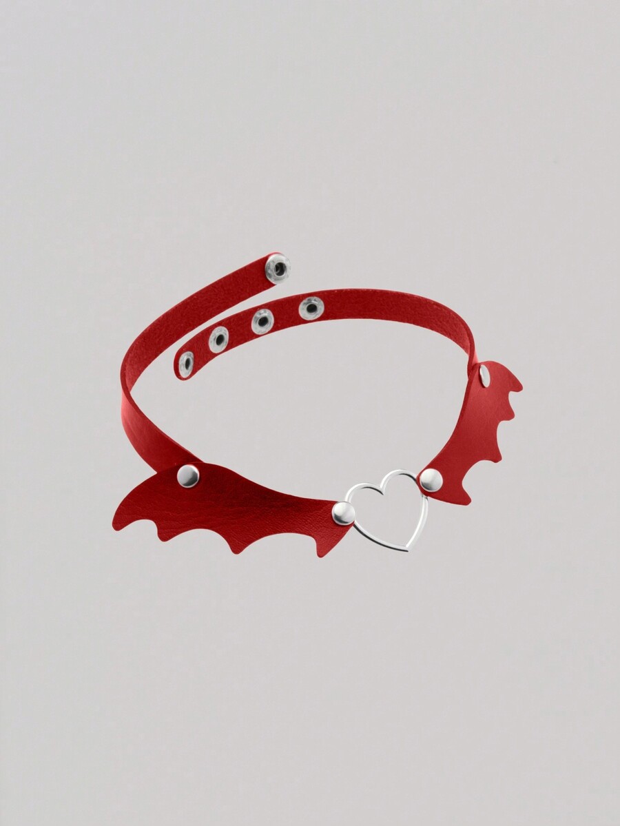 Kawaii 1pc Punk-Style Bat Wings Vampire Faux Leather Heart Choker Necklace