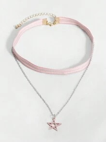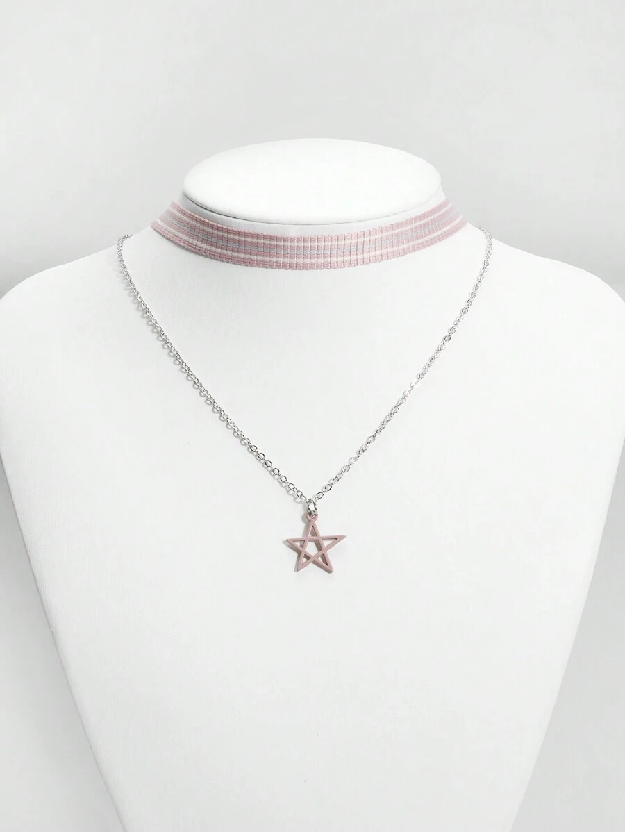 Kawaii 1pc Sweet Pink Pentagram Choker Necklace
