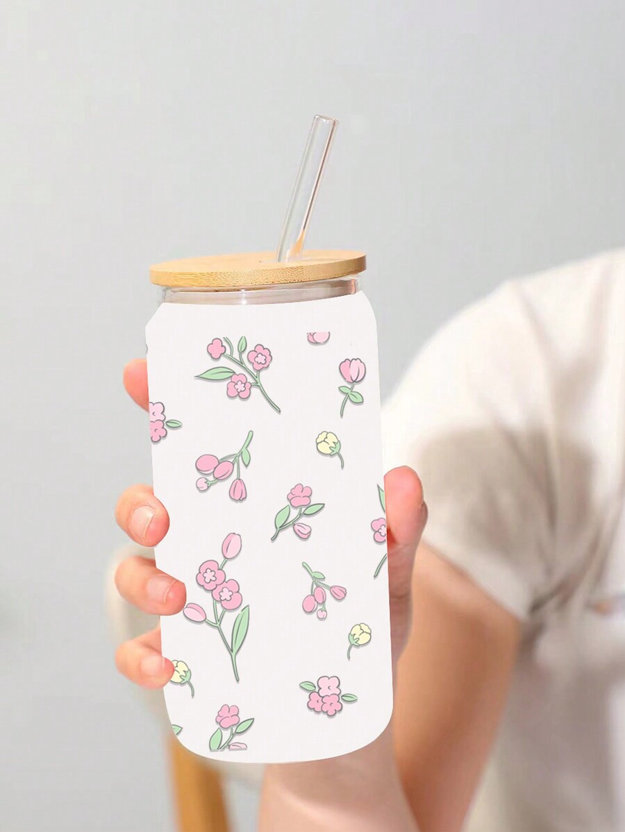 Kawaii 1pc UV Heat Transfer Printed Pink Floral & Crystal Sticker For Cups