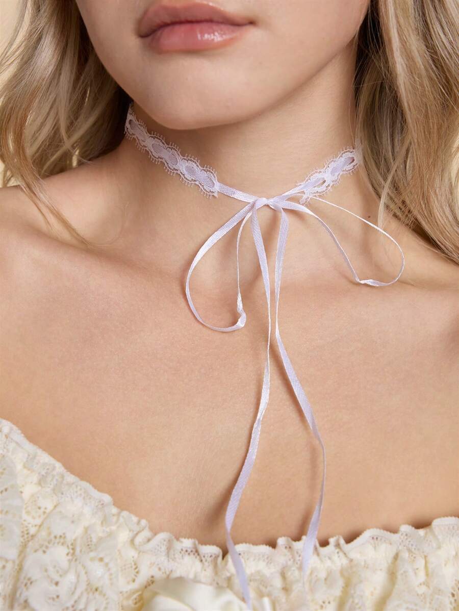 Kawaii 1pc Vanilla White Lace Self-Tie Ribbon Choker Necklace