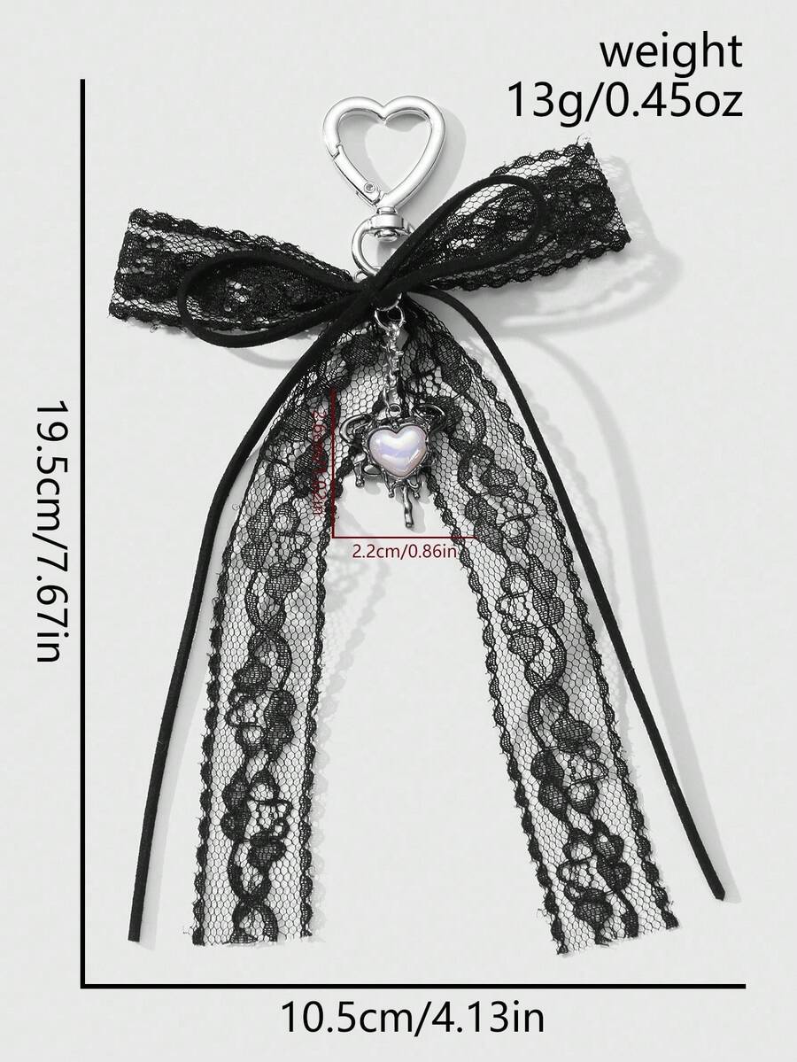 Kawaii 1pc Vintage Y2K Goth Dark Style Black Velvet Lace Bow Star Liquid Resin Heart DIY Keychain Bag Pendant, Suitable For Women, Great For Daily Wear And Holiday Gift, Halloween