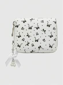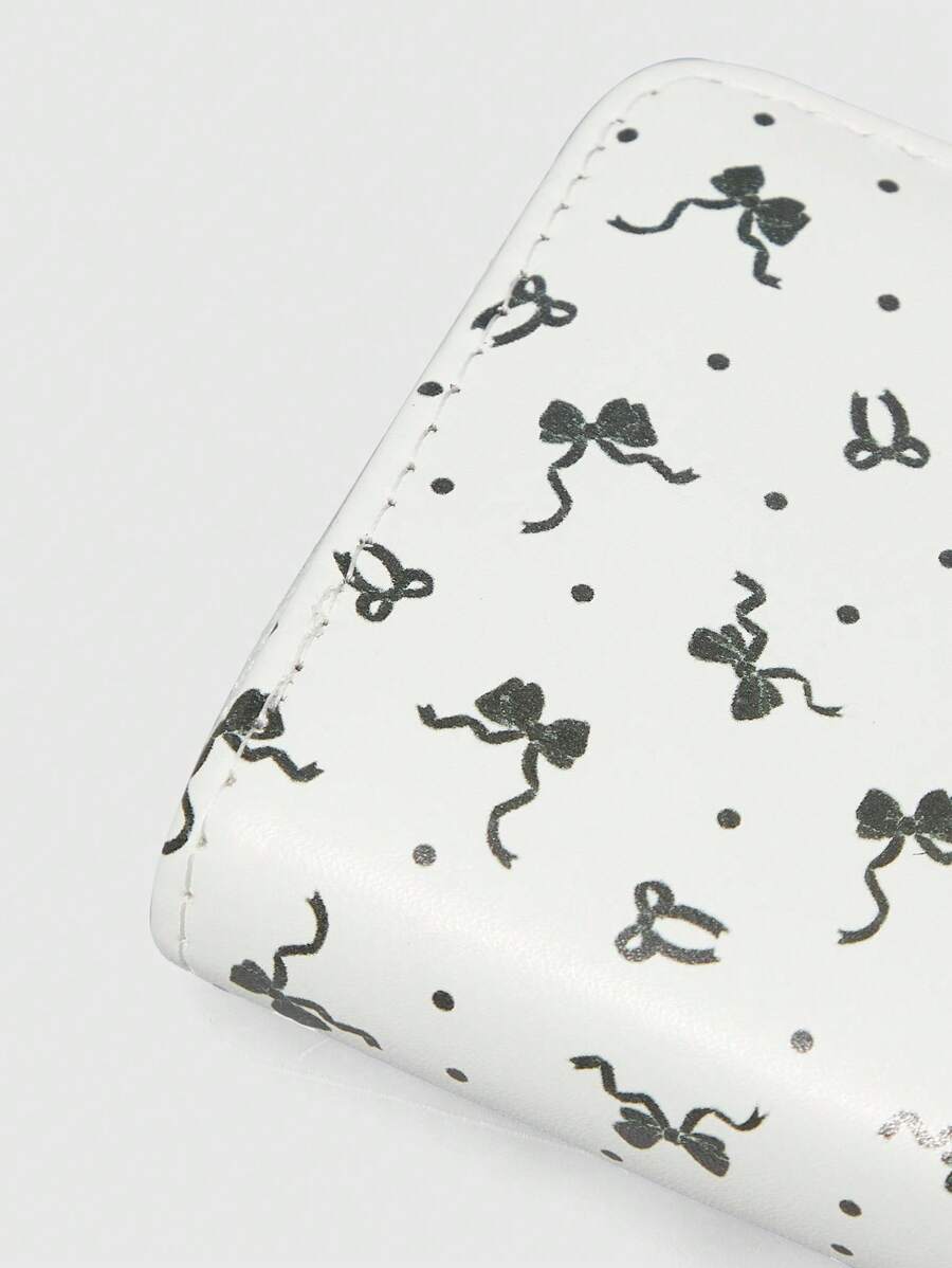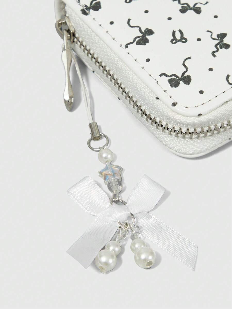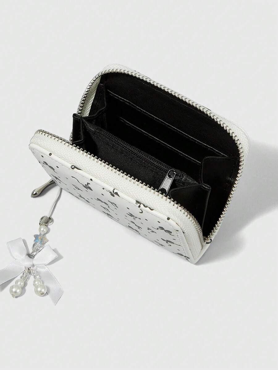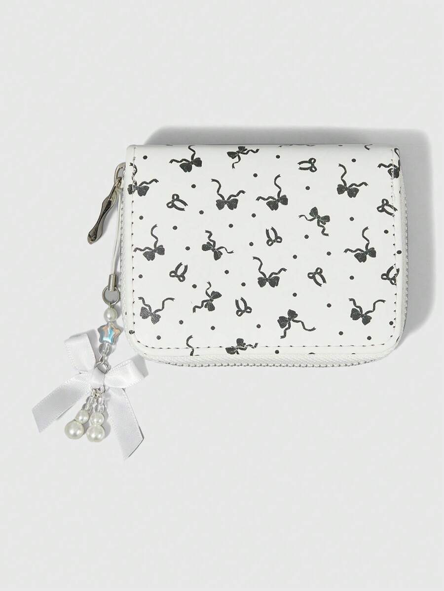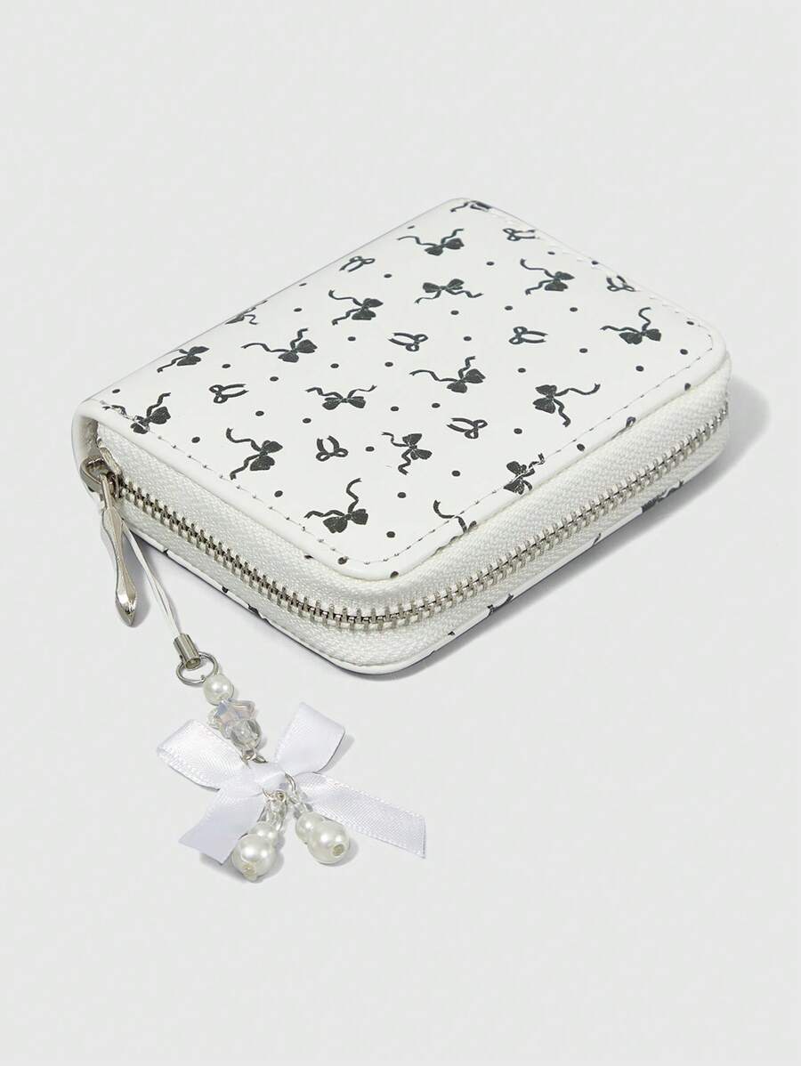 Kawaii 1pc White Polka Dot Bow Decoration Zipper Minimalist Wallet Coin Purse For Women