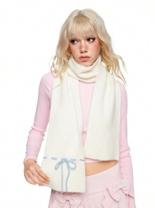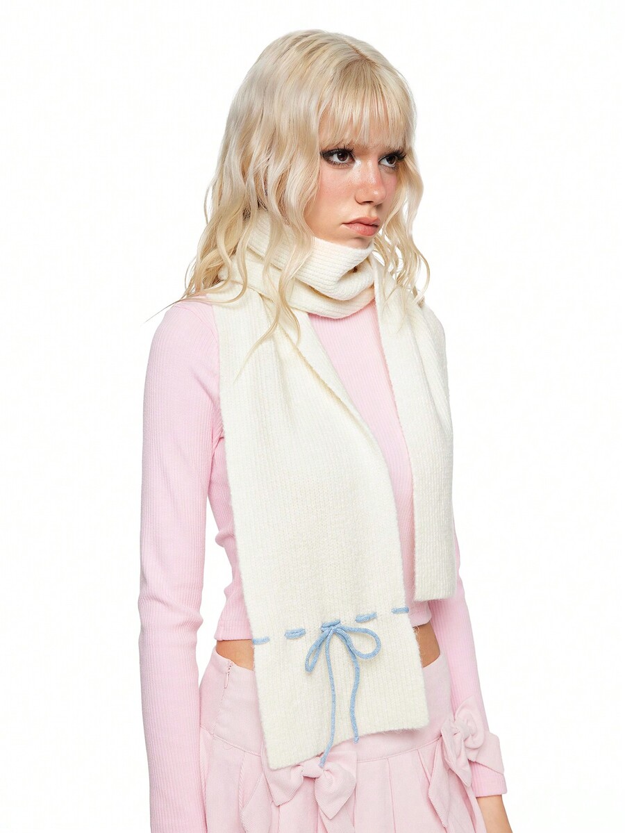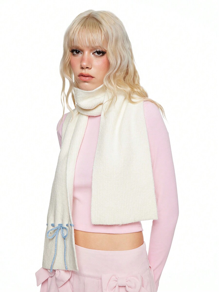Kawaii 1pc Women's Winter Cute Basic Knitted Bow Scarf, Suitable For Casual Wear And School