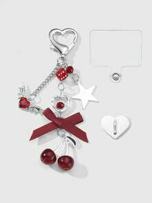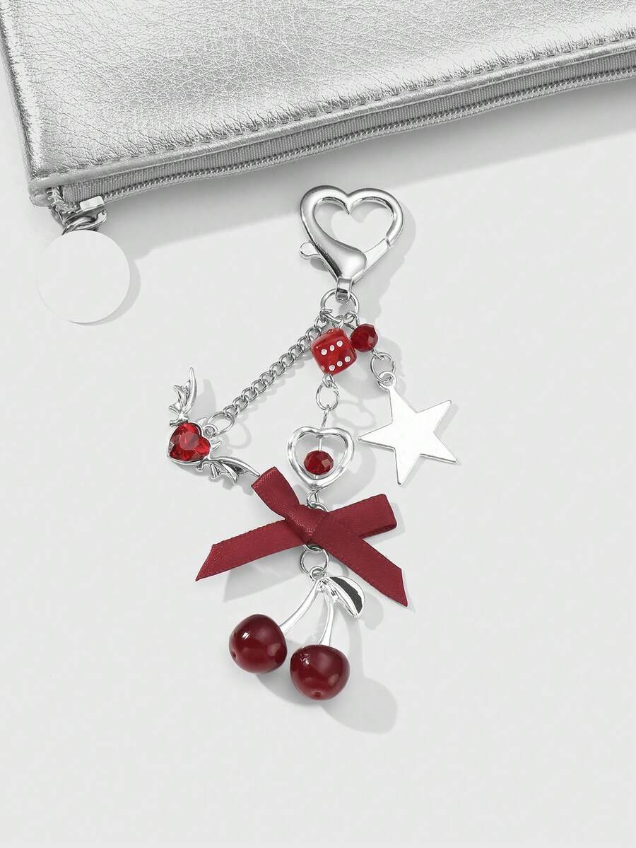 Kawaii 1pc Y2K Chic & Sweet Fashion Delicate Personalized High-Quality Silver Hollow Chain Crystal Ball Dice Wing Water Diamond Heart Star Ribbon Bow Cherry Resin Pendant DIY Keychain, Bag Charm, Cup Hanger, Phone Charm, Comes With Phone Holder & Heart Sticker, Suitable For Women, Girls, Daily Wear, Holiday Gift