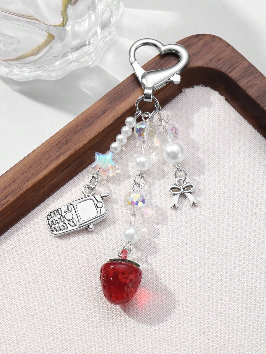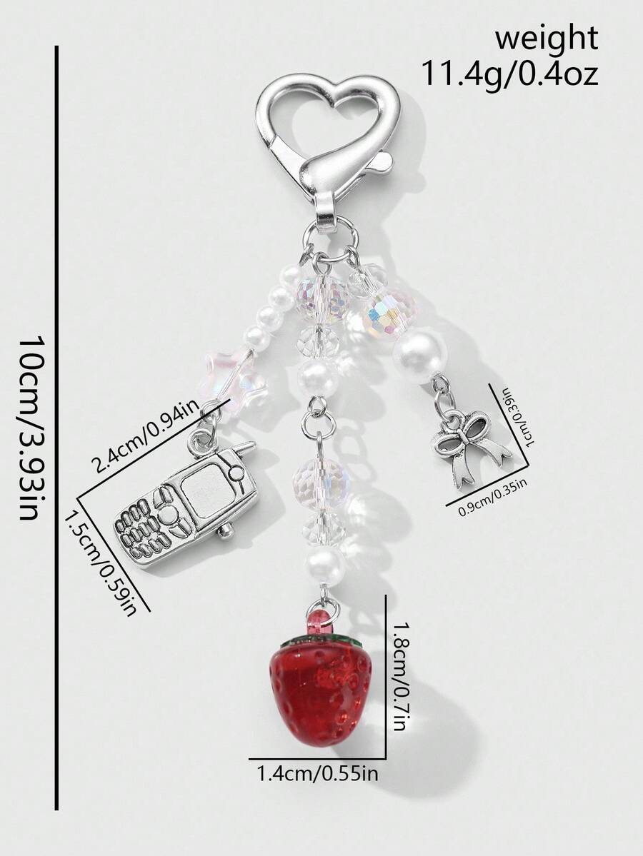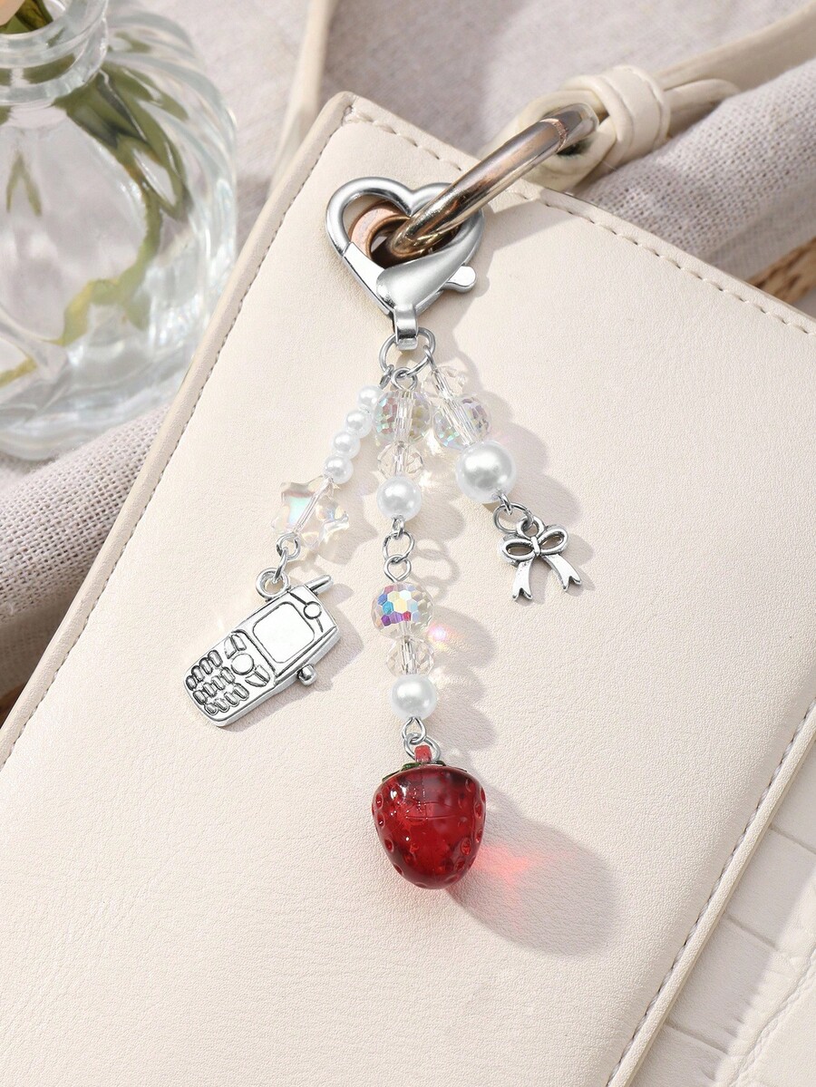 Kawaii 1pc Y2K Chic Versatile High-End Faux Pearl & Crystal Beaded Mini Phone, Star, Bow, Red Resin Strawberry DIY Keychain Bag Charm, Suitable For Women, Daily Wear, Holiday Gift